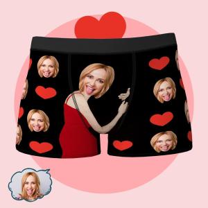 Valentine's Day Gifts Personalized Red Heart Underwear Custom Photo Boxer Briefs Custom Photo Boxers