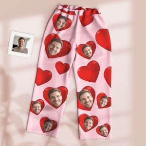 Custom Pajamas Pants Dark Tone with Embedded Photo Hearts Adjustable Waistband Multiple Color Options Valentine's Day Gift
