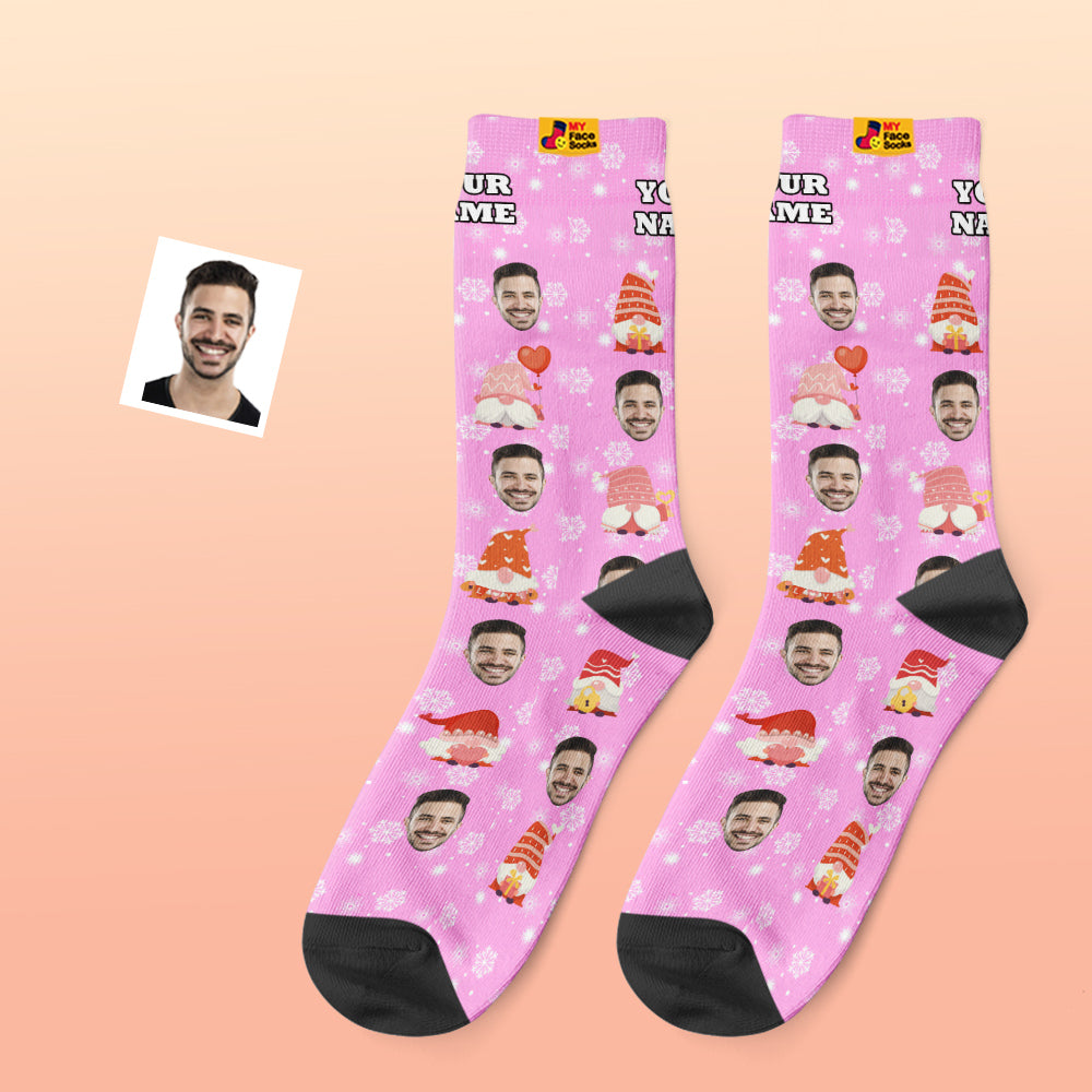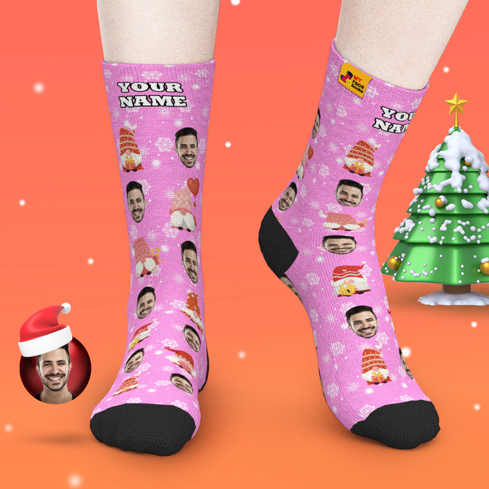 Pink Christmas Custom Face Socks Add Pictures and Name Cute Gift