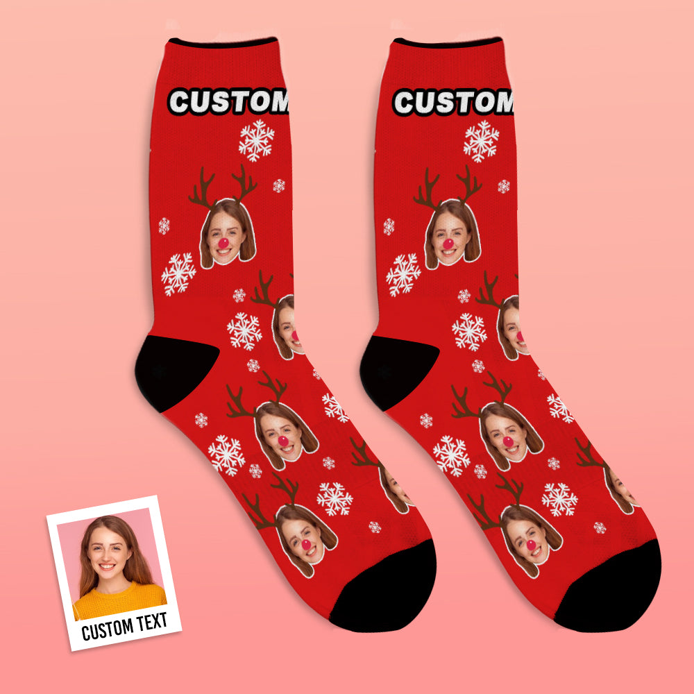 Christmas Gift Custom Face Crew Socks With Elk&Snowflake