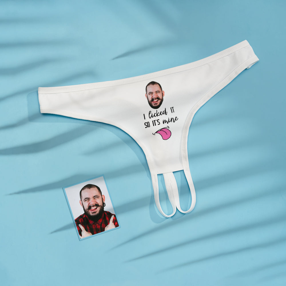 Custom Face Crotchless Panty I Licked It So It's Mine Personalized Open Crotch Lingerie