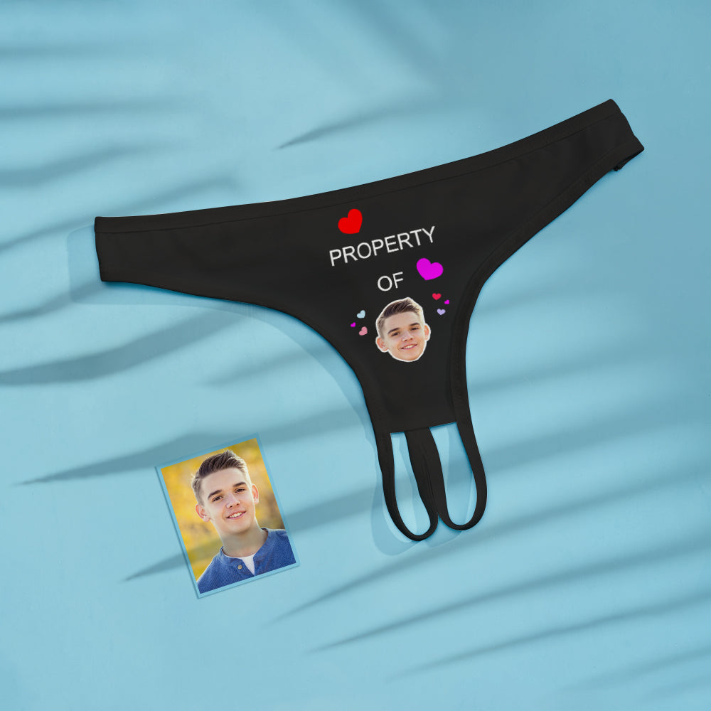 Custom Face Crotchless Panty Property Of You Personalized Open Crotch Lingerie