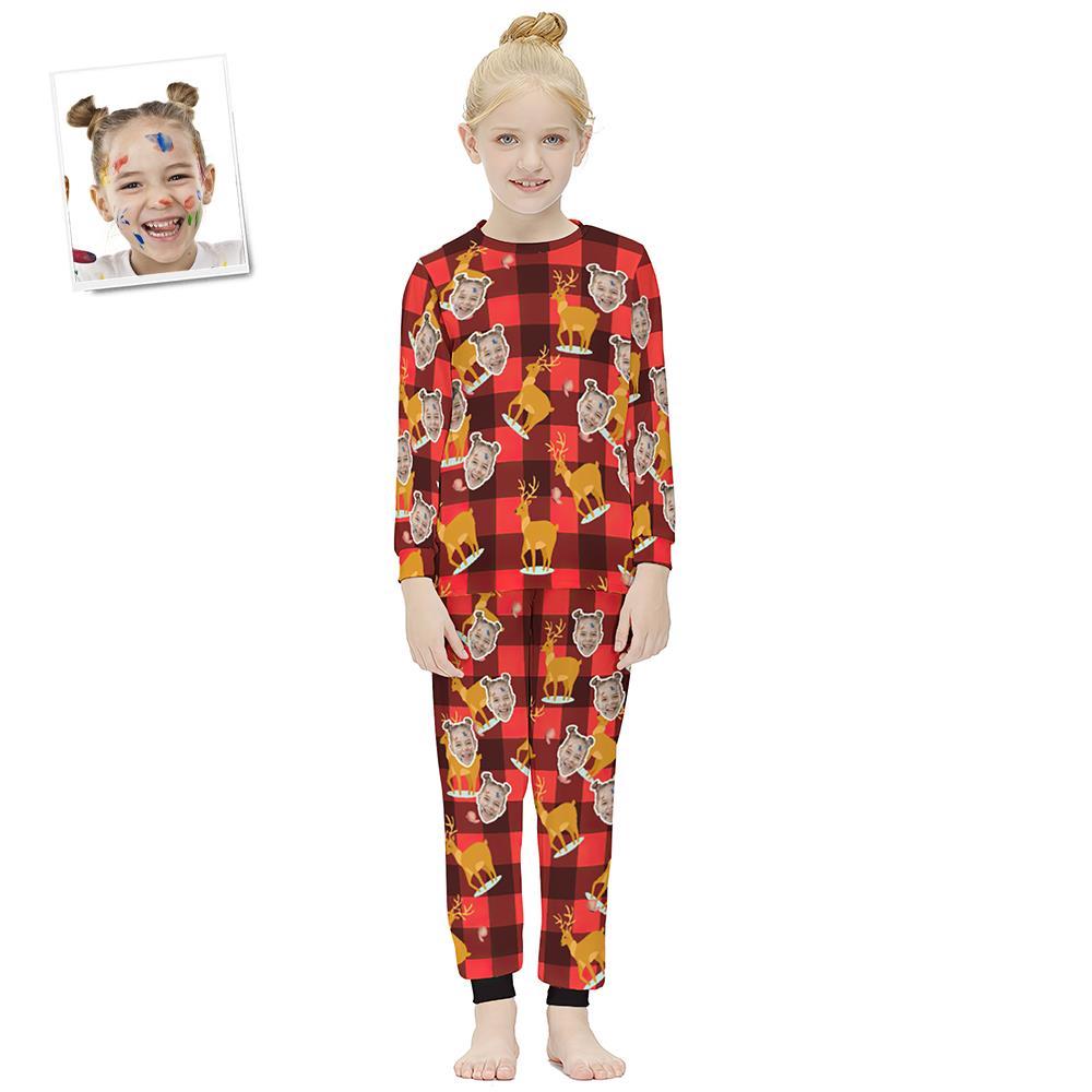 Custom Face Long Sleeve Pajamas Kids Suit - Christmas Plaid Fawn