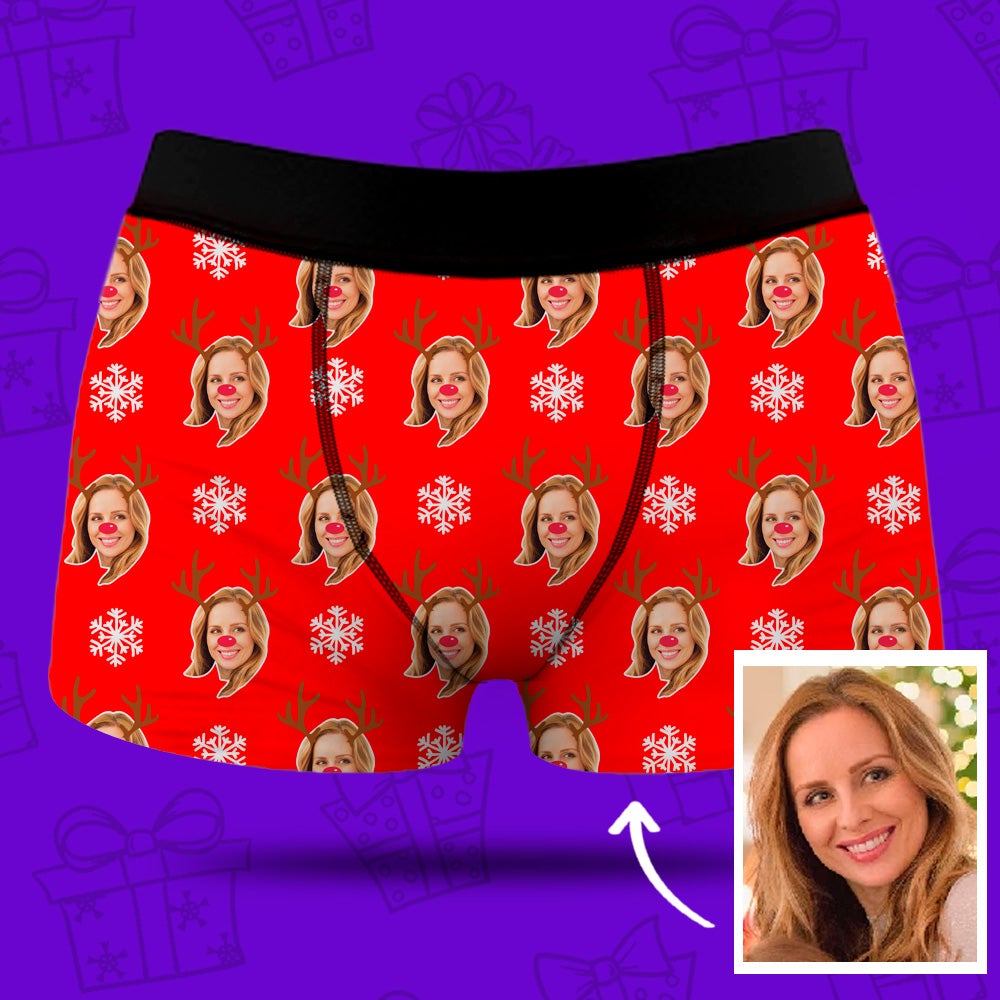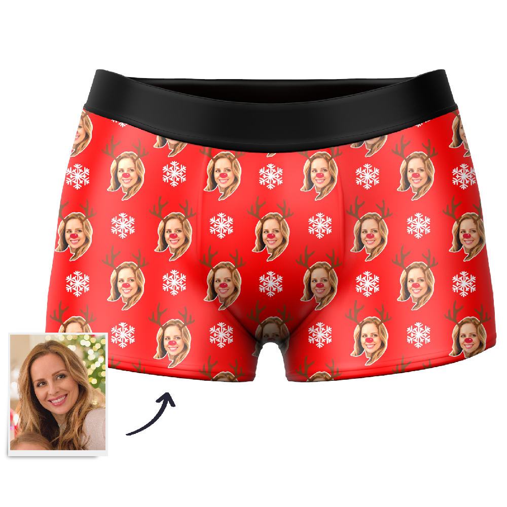 Men's Custom Face Boxer Shorts - Christmas Reindeer & Snowflake