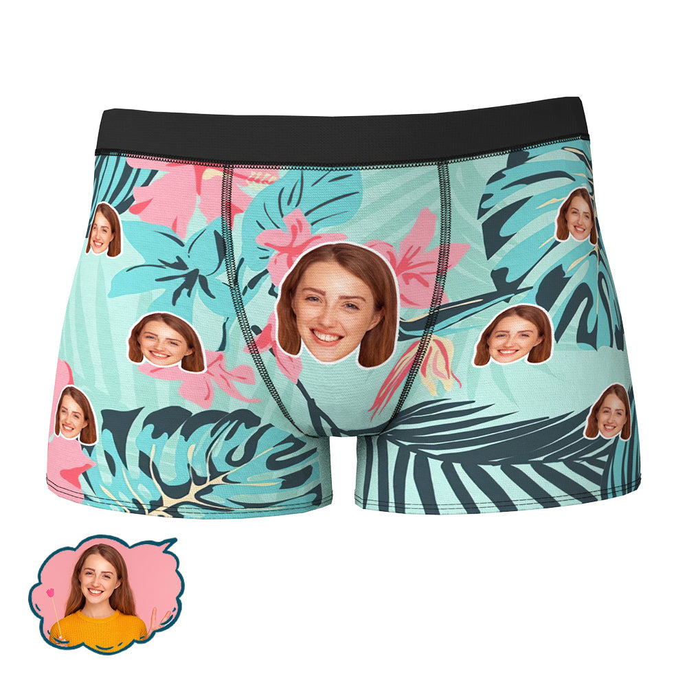 Custom Face Boxer Tropical Leaves Matching Briefs Underwear Gift for Couple