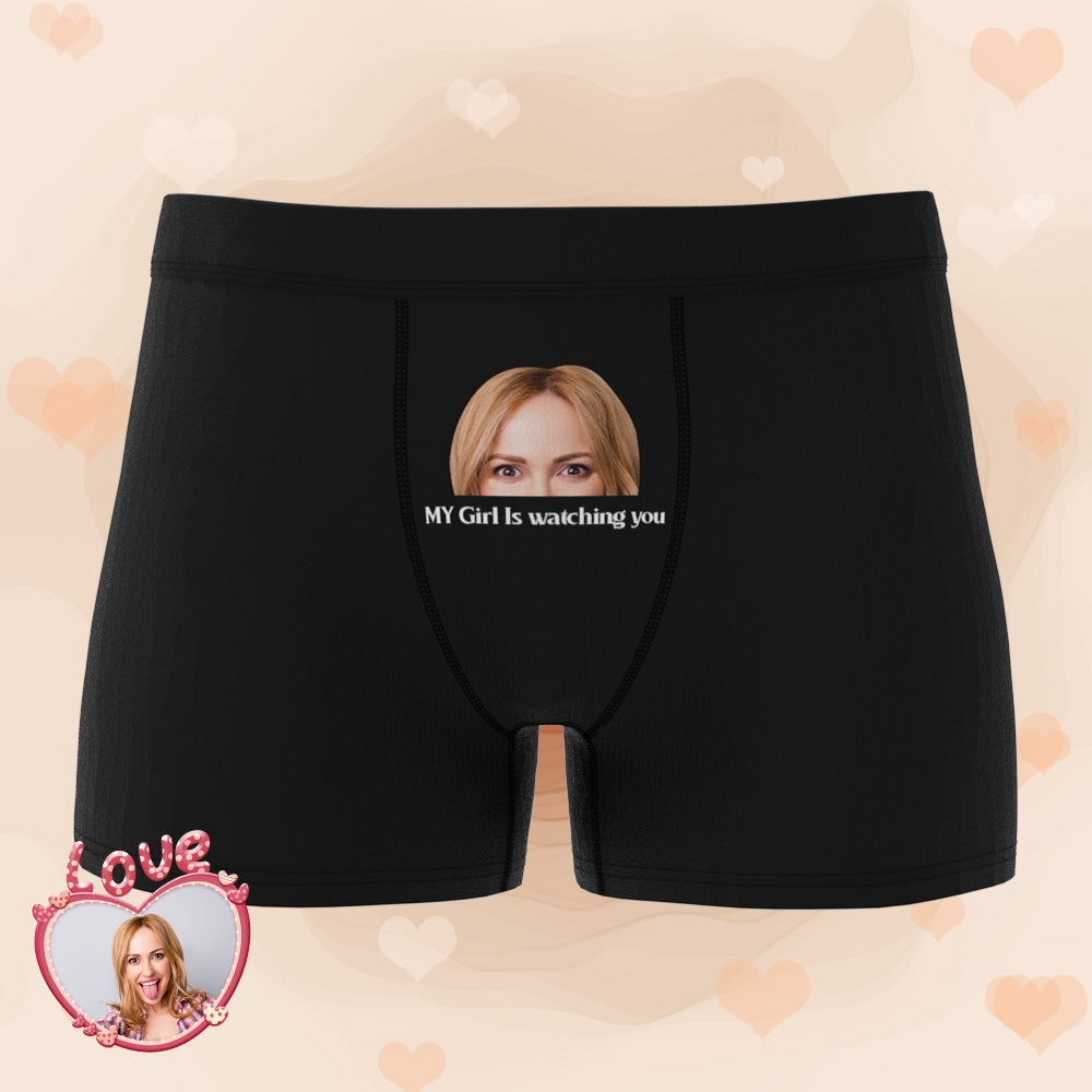 Custom Photo Face Underwear My Girl is Watching You Funny Gifts for Him