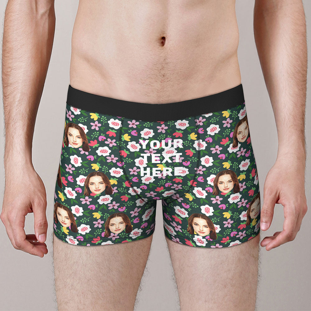 Custom Colorful Floral Hearts Boxer Briefs Put Your Face on Comfortable Boxer Underwear Fun Gift
