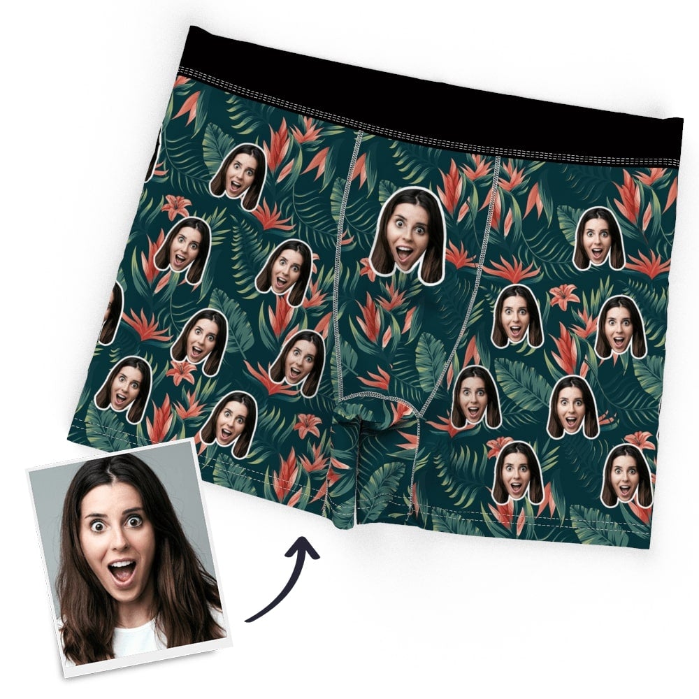 Custom Face Boxer Tropical Flower Matching Briefs Underwear Gift for Couple