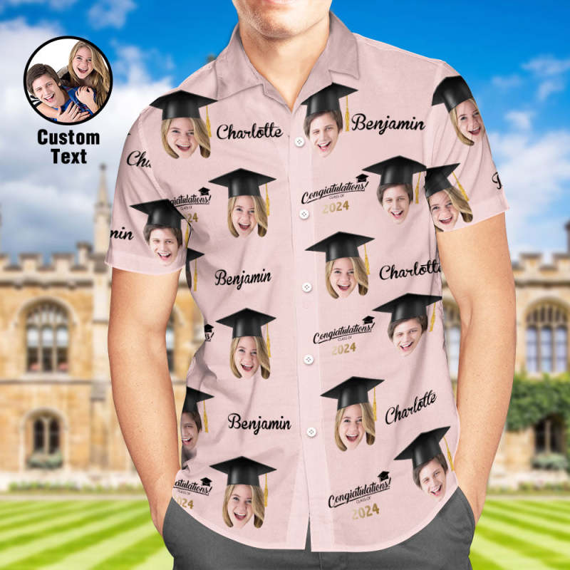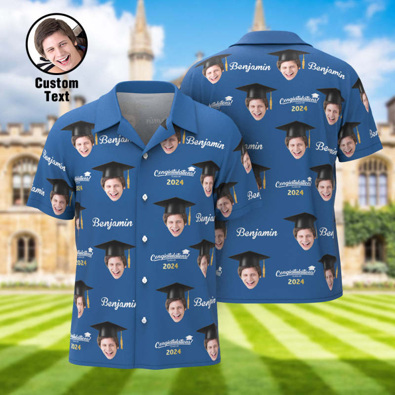 Custom Men's Hawaiian Shirt Personalized Face Aloha Shirts for Graduation Party