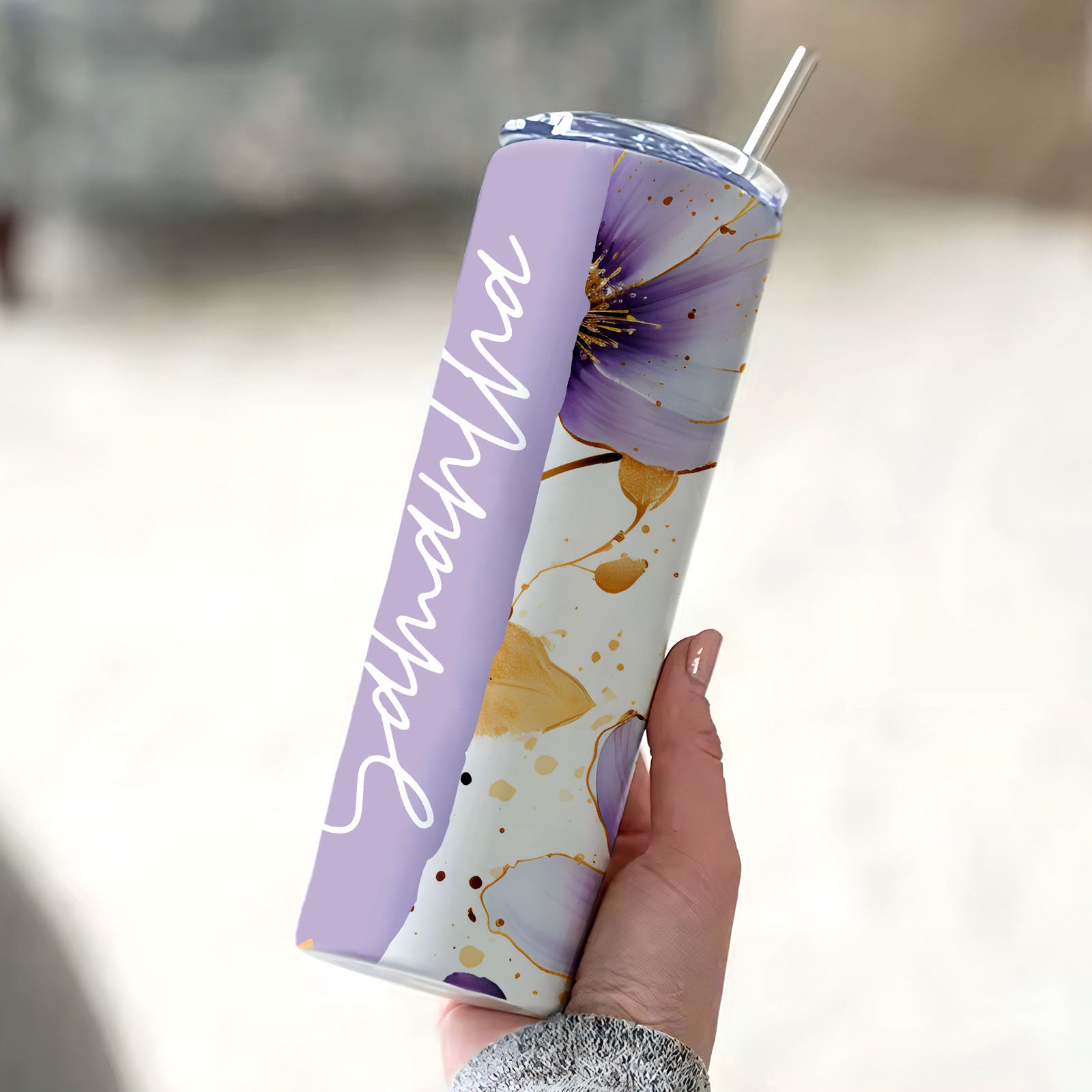 Personalized Skinny Floral Tumbler Name Water Cup Seamless Girl Gift