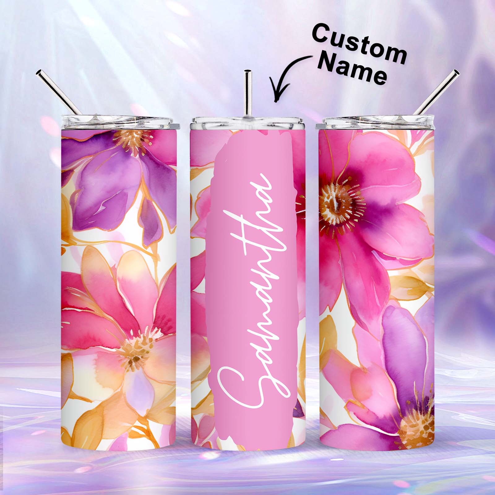 Custom Name Floral Tumbler Creative Summer Gift for Her