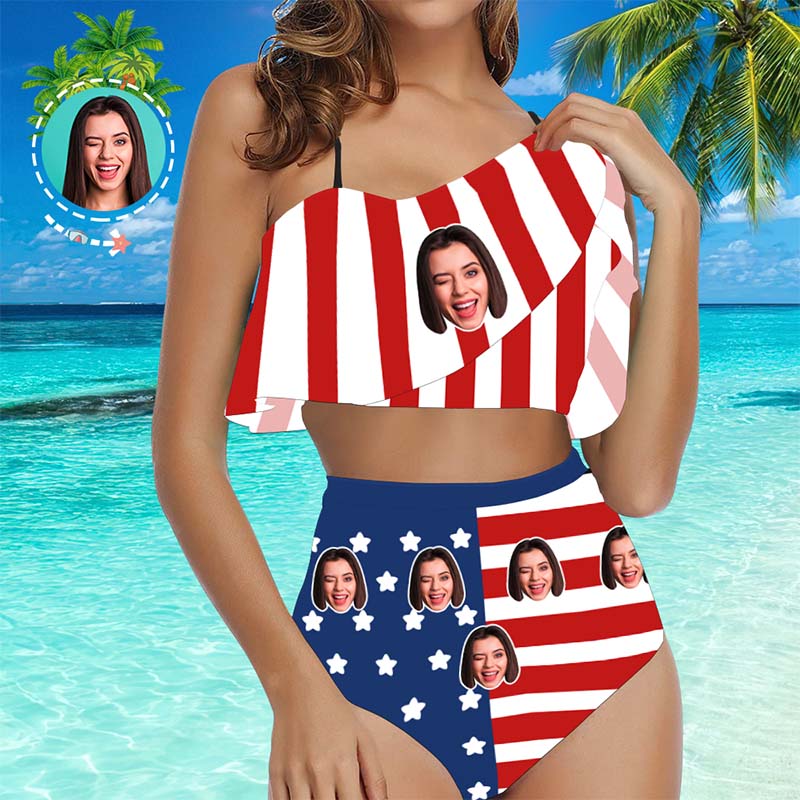 Face Swimsuit Custom Ruffle Bikini with Face High Waisted Bikini