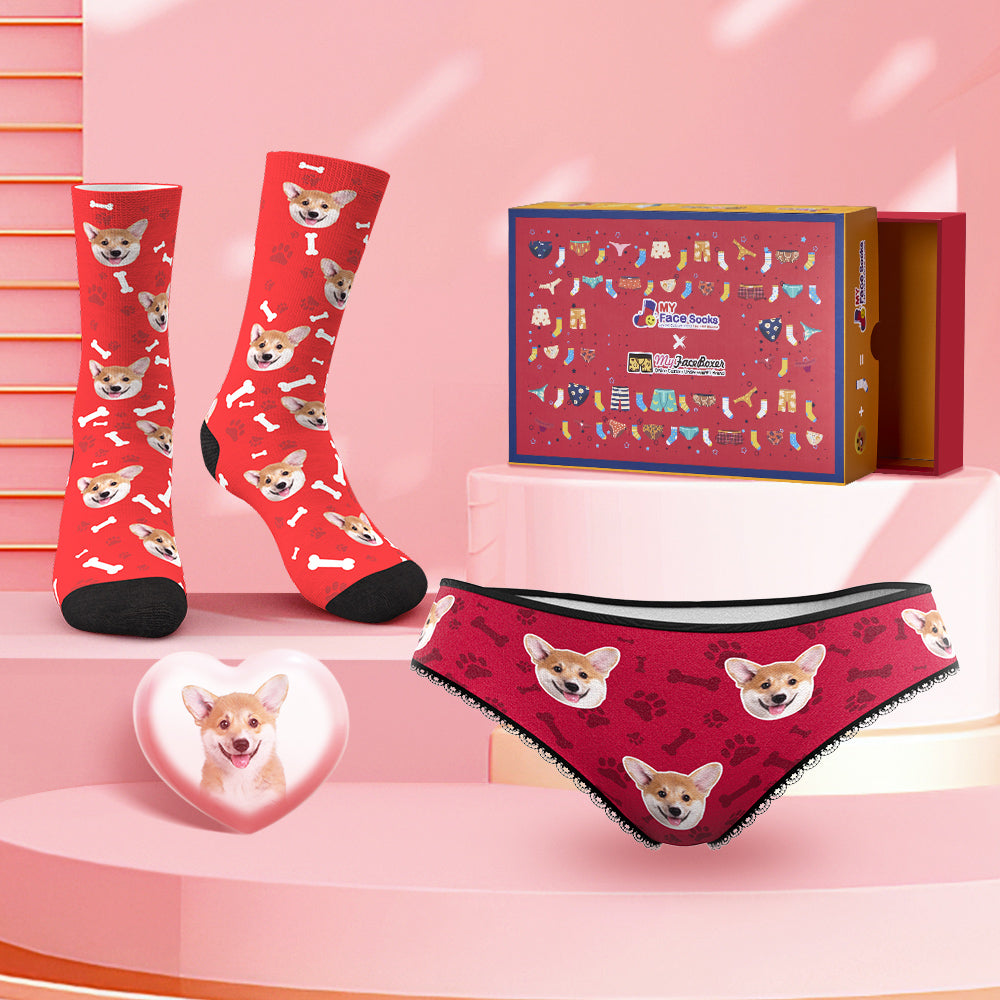 Custom Face Panties And Socks Set For Her Dog Claw Style Co-Branding Set