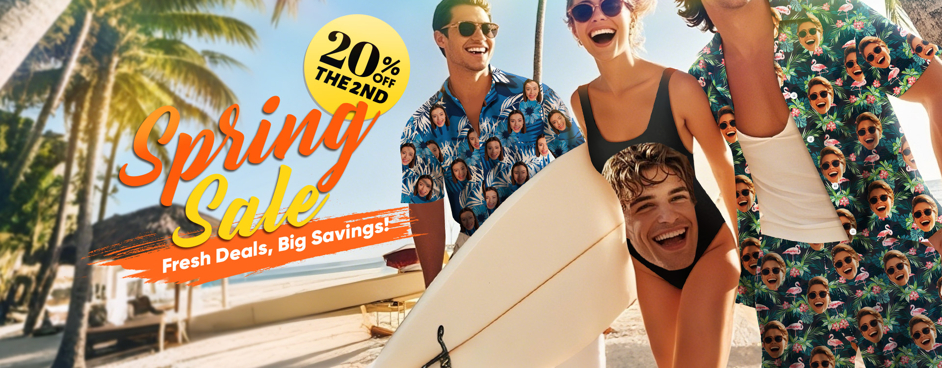 Men's Custom Face Beach Trunks All Over Print Photo Shorts - Tropical Island -