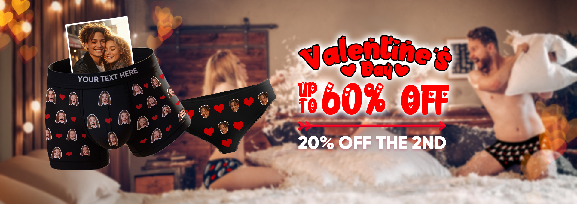 Custom Face Couple Matching Underwear Sweet Love Heart Personalized Funny Underwear Gift for Lovers -