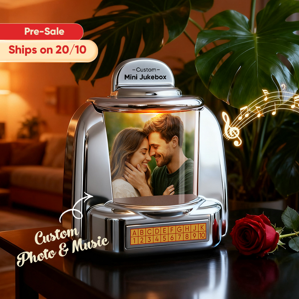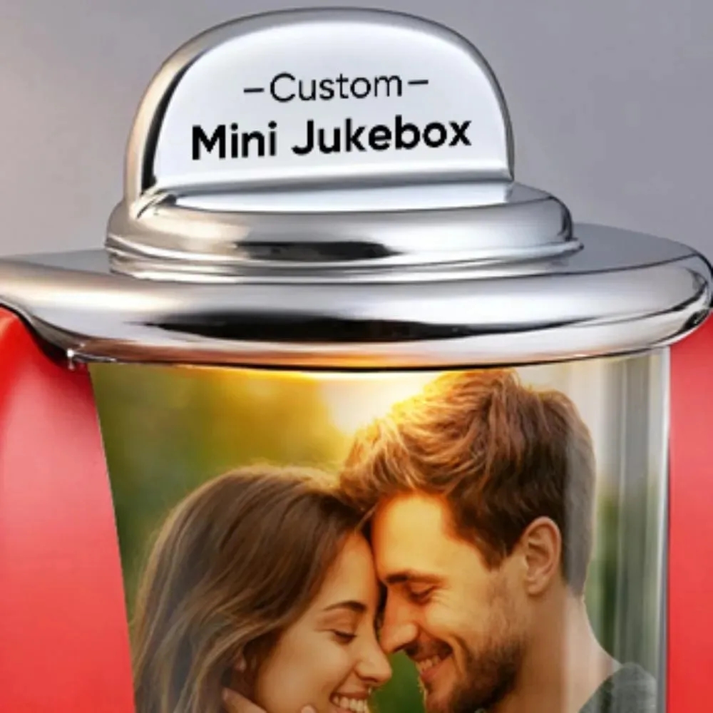 Custom Mini Jukebox Retro Speaker – Personalized Photo Music Mini Player with Radio | Vintage Tabletop Home Decor Nostalgic Gift