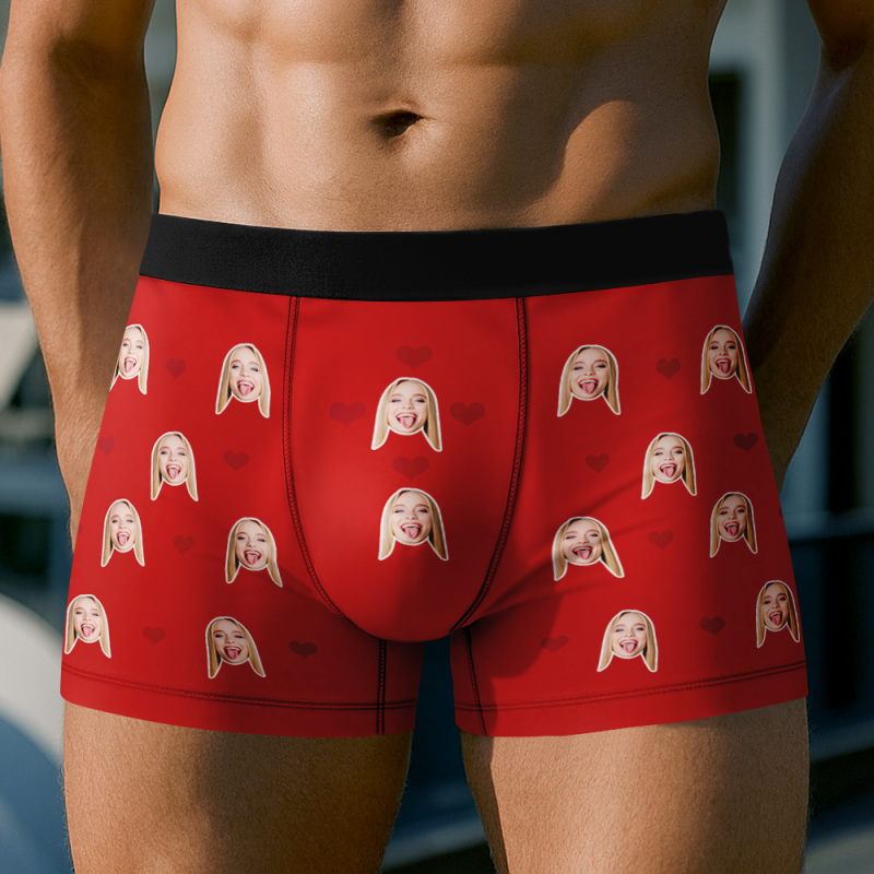 Breathable Ice Silk Men's Boxer Briefs Custom Heart And Face Underwear