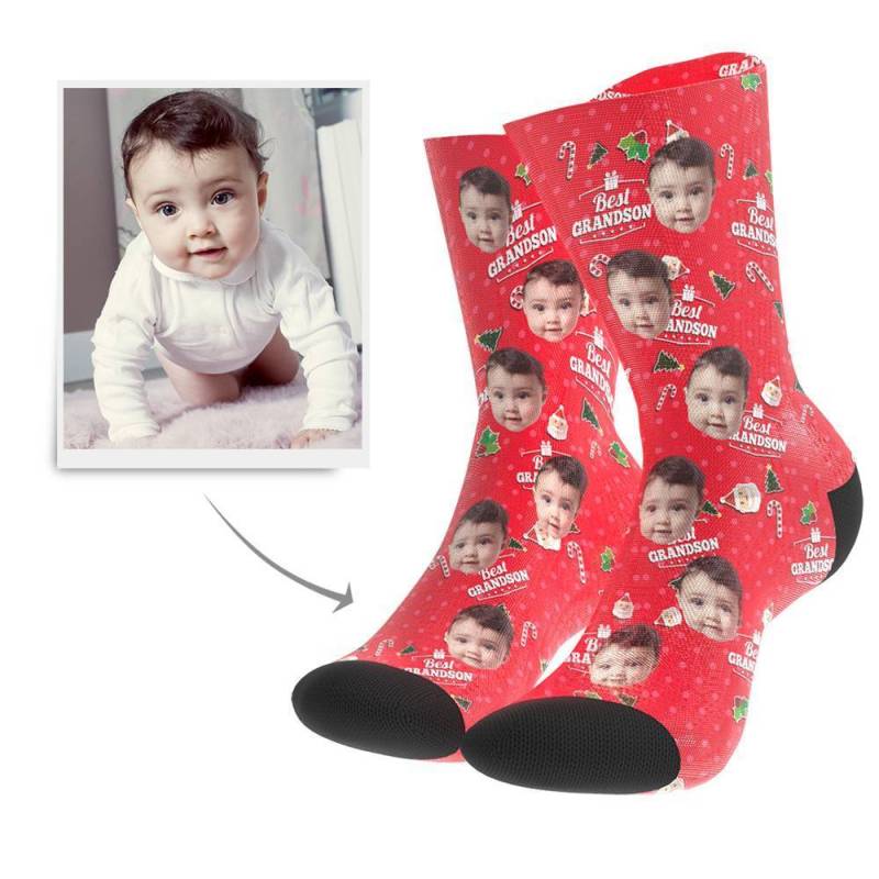 Christmas Gift Custom Face Crew Socks (Grandson)