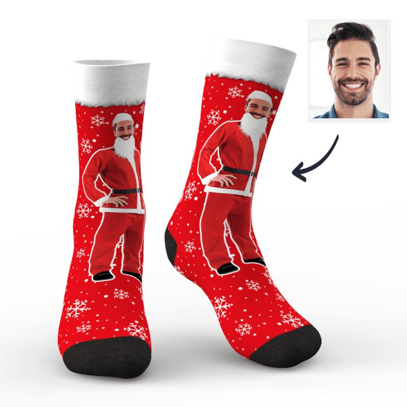 Christmas Gifts Custom Face On Santa Claus Body Crew Socks
