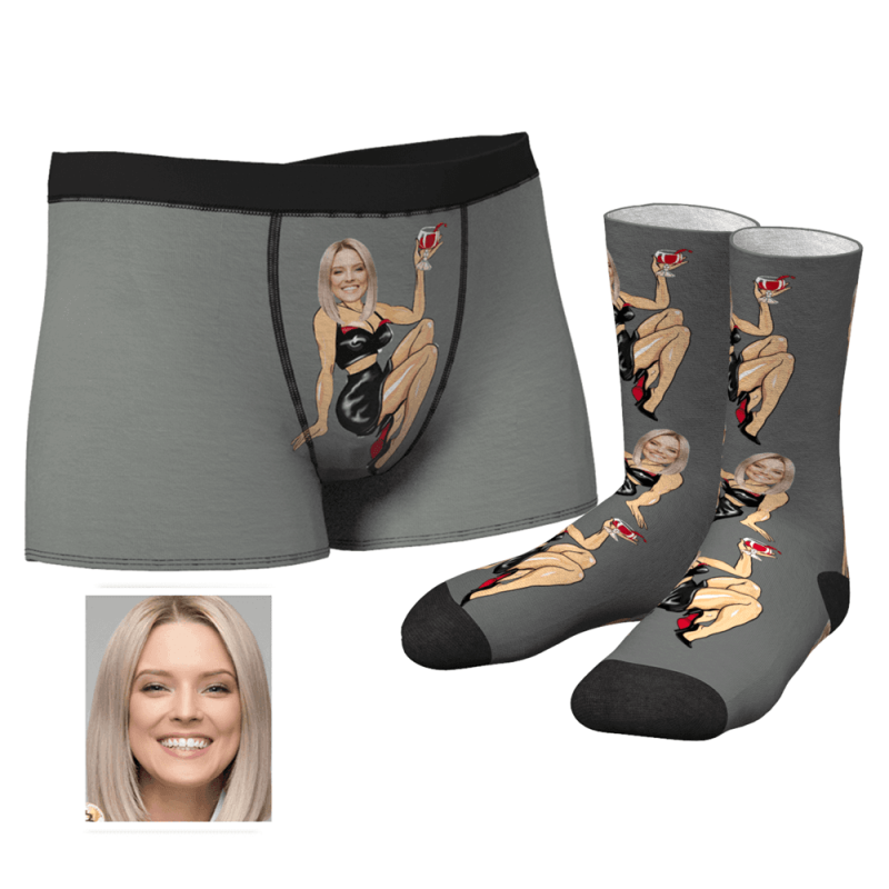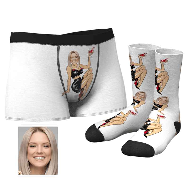 Christmas Gifts Men's Custom Face on Sexy Girl Body Boxers And Crew Socks Set