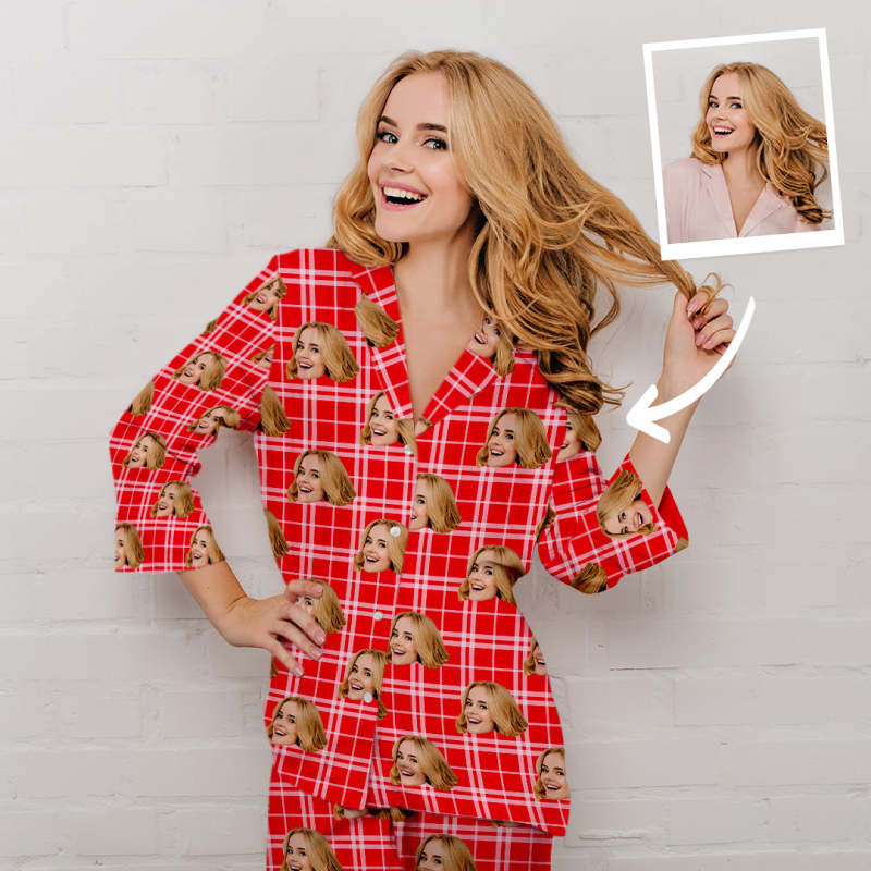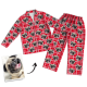 Red Plaid Custom Pet Photo Long Sleeve Pajamas, Nightwear