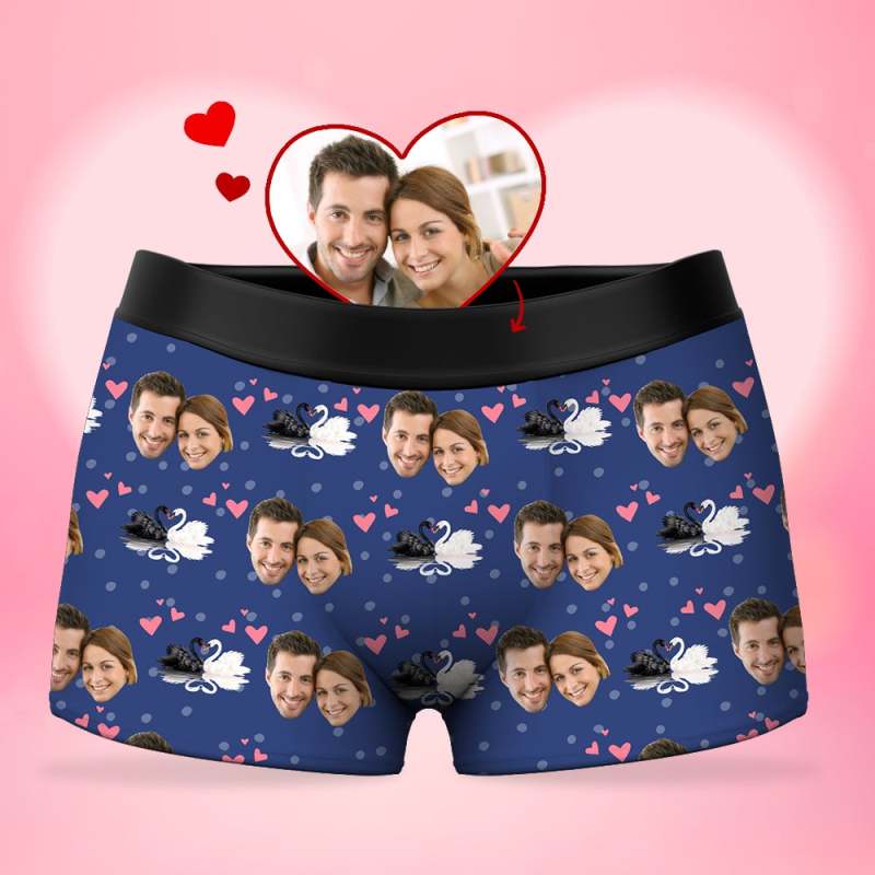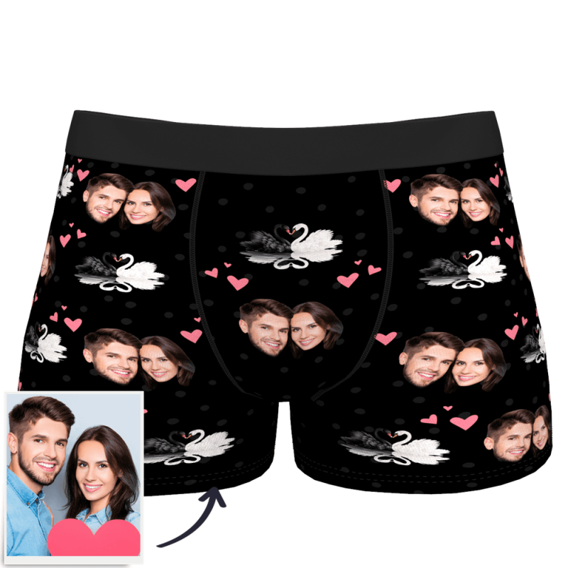 Custom Men's Photo Boxer Shorts - Black and White Swan