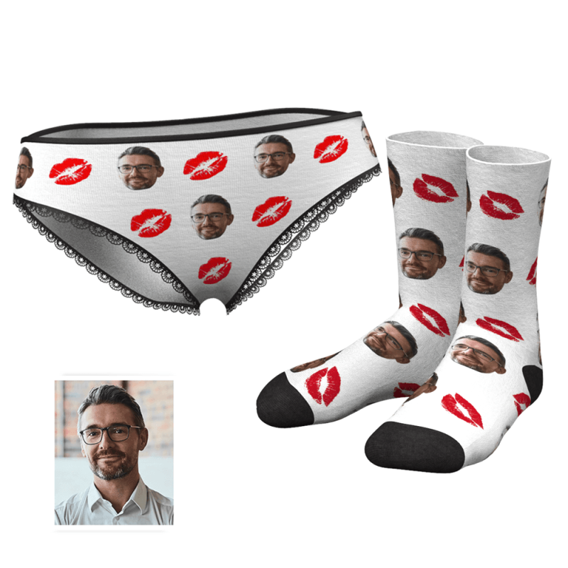 Kiss Couple Women's Custom Face Colorful Panties And Crew Socks Set