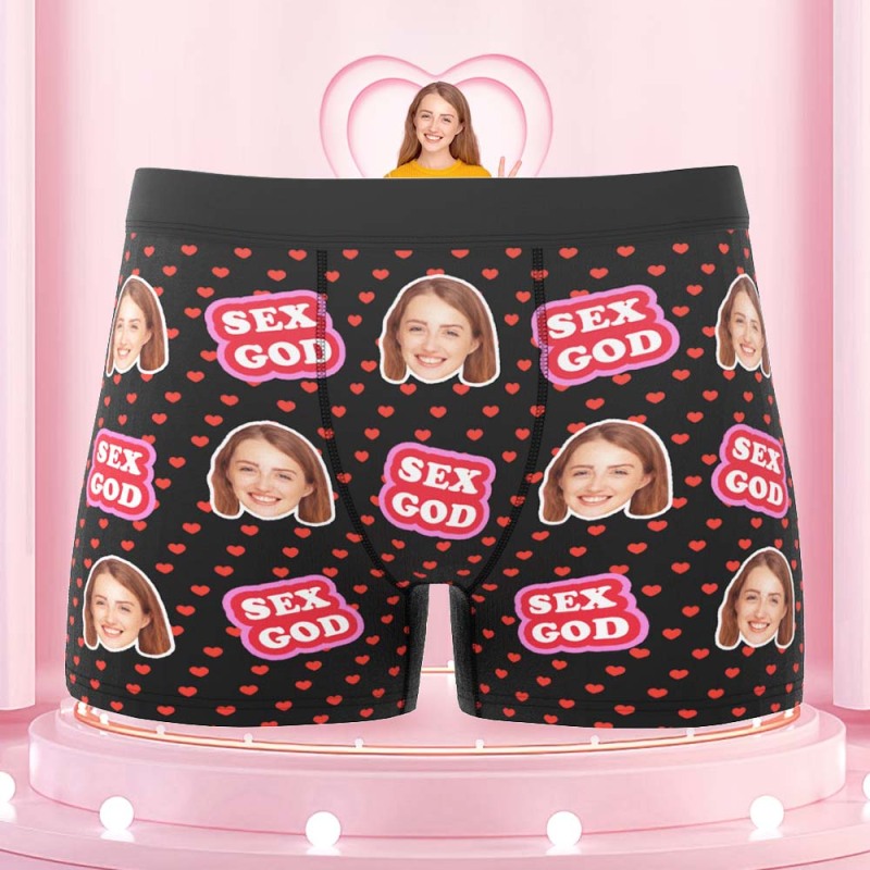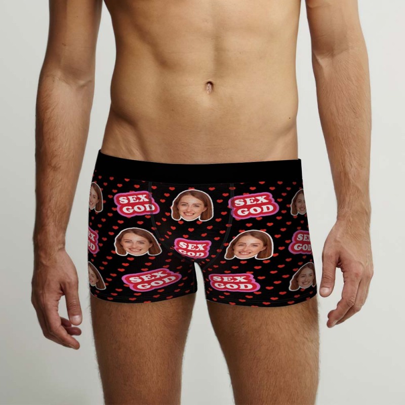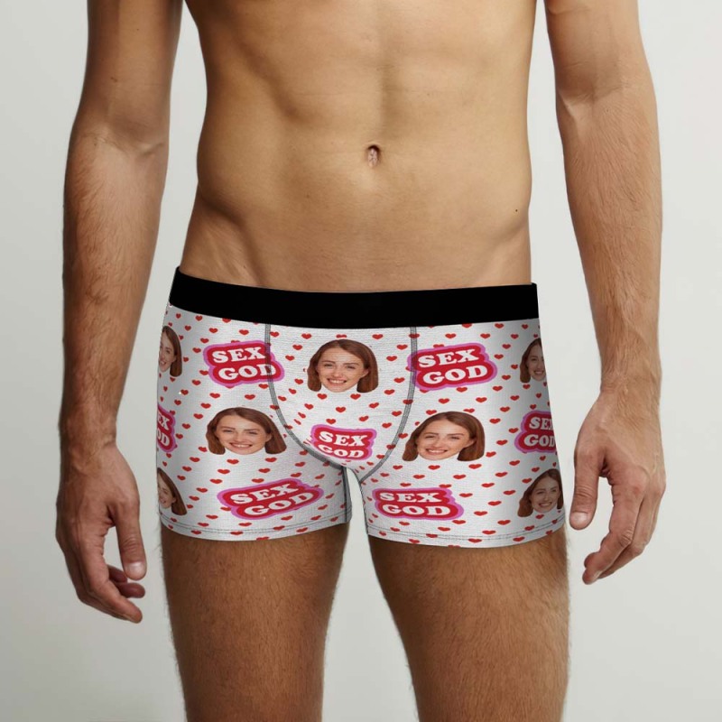 Custom Face Boxers Briefs Personalized Men's Shorts With Photo - Sex God