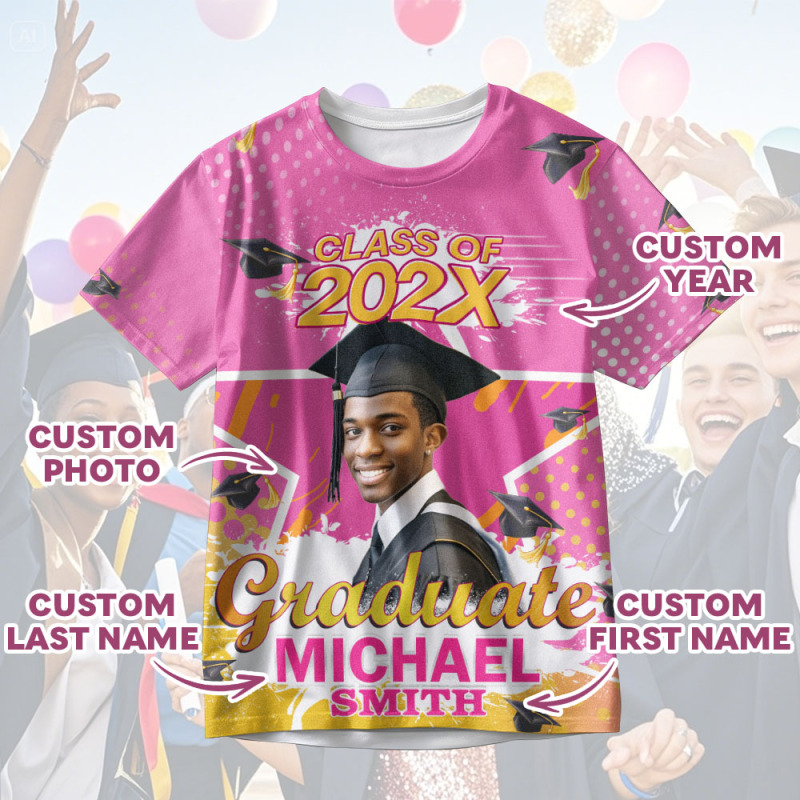 Custom 3D Graduation T-shirt Personalized Name & Year T-shirt Graduation Gift for Him