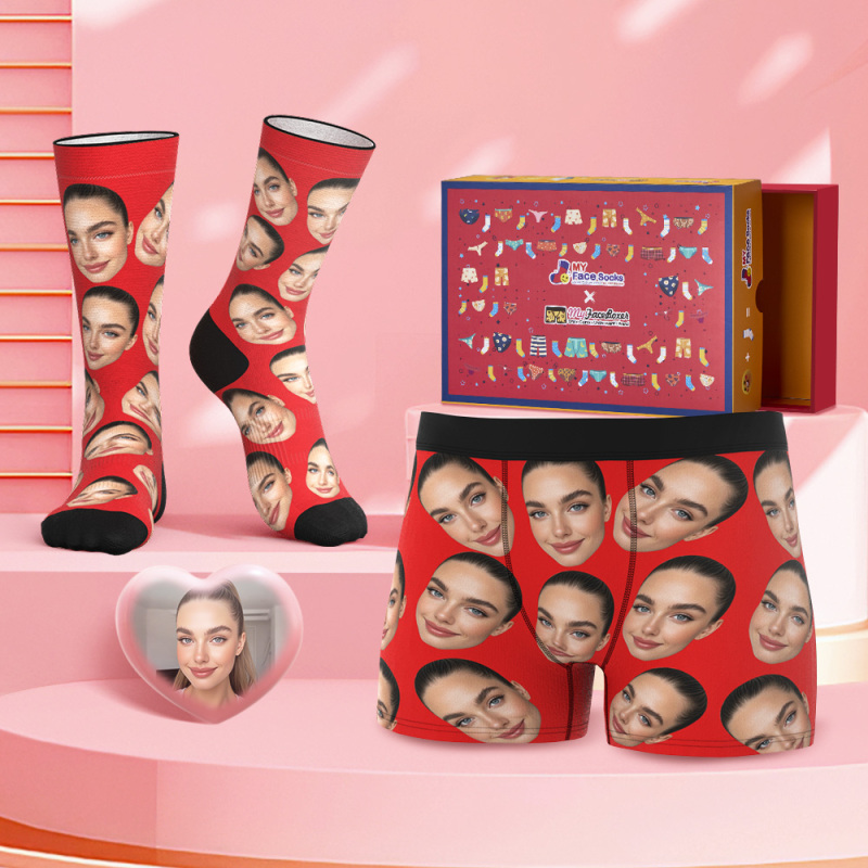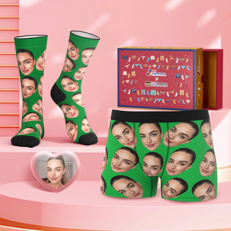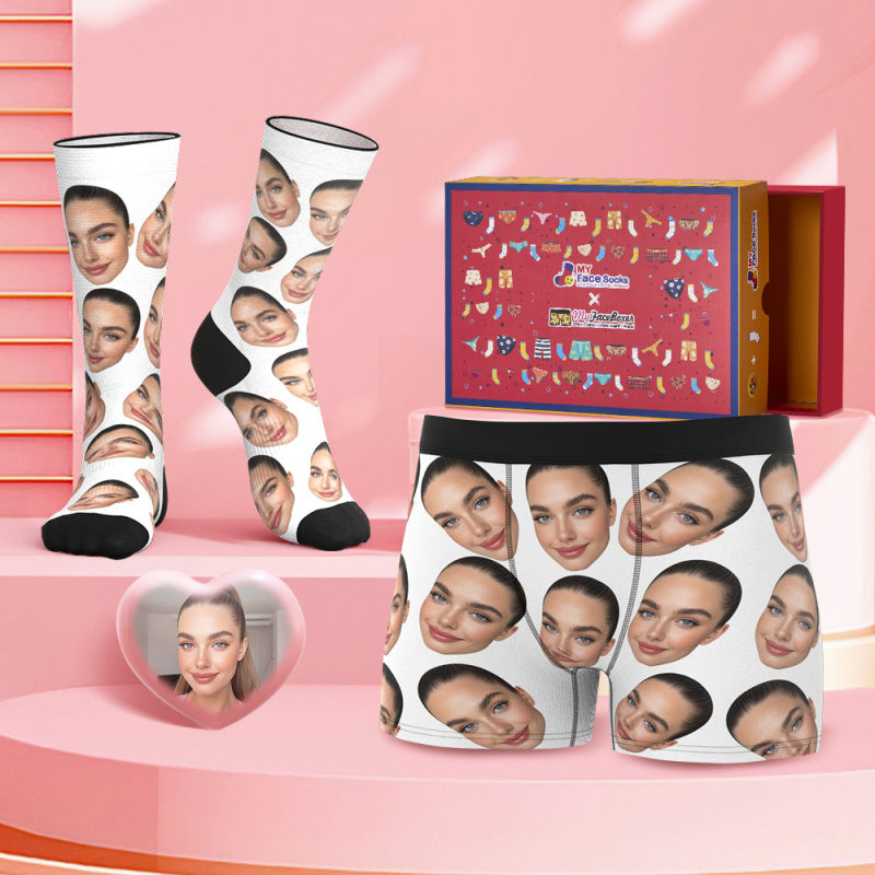 Custom Big Face Boxer Shorts And Socks Set Personalized Photo Gift