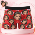 Custom Big Face Boxer Shorts Personalized Colorful Waistband Red Boxer Briefs Red and Pink Hearts Gifts For Boyfriend