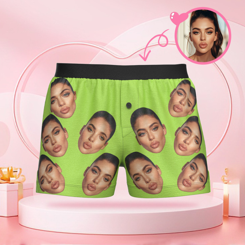 Custom Big Face Boxer Shorts with Personalized Text on the Waistband Personalized Casual Underwear for Him