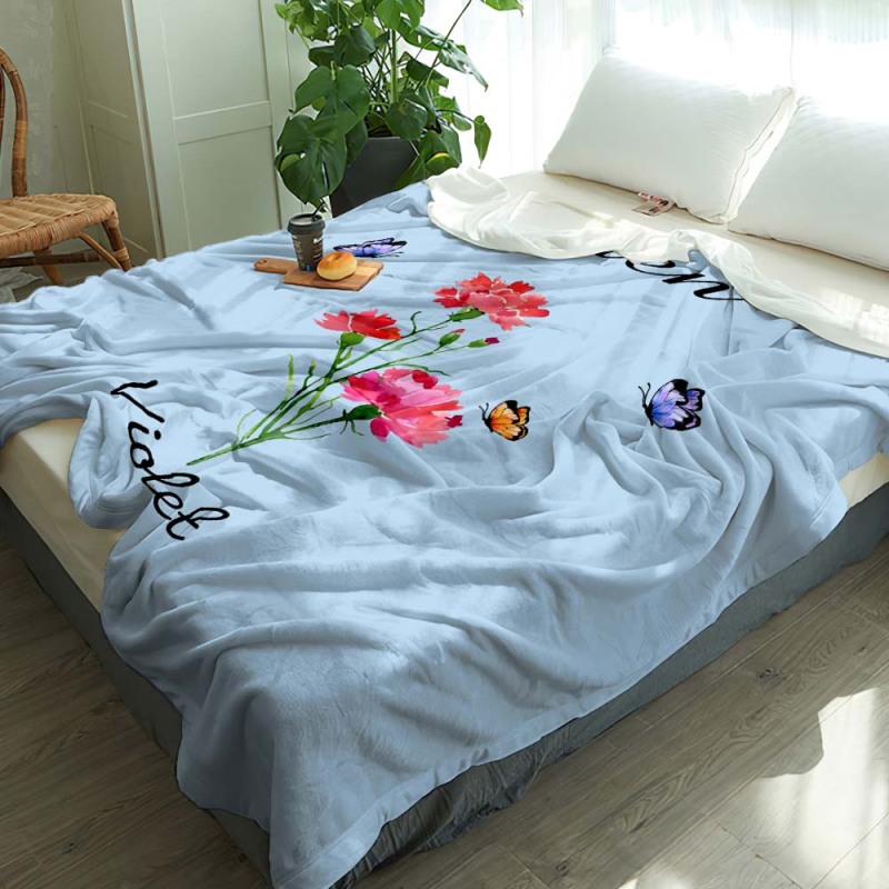 Custom Birth Month Flower Blanket Grandma's Garden Children's Names Meaningful Gifts For Mom