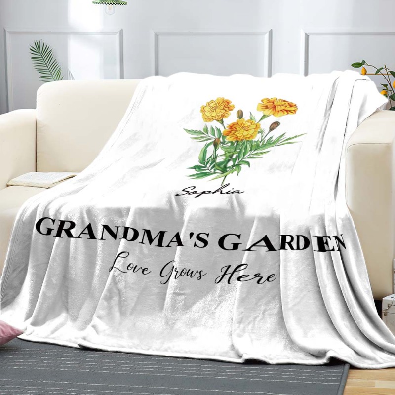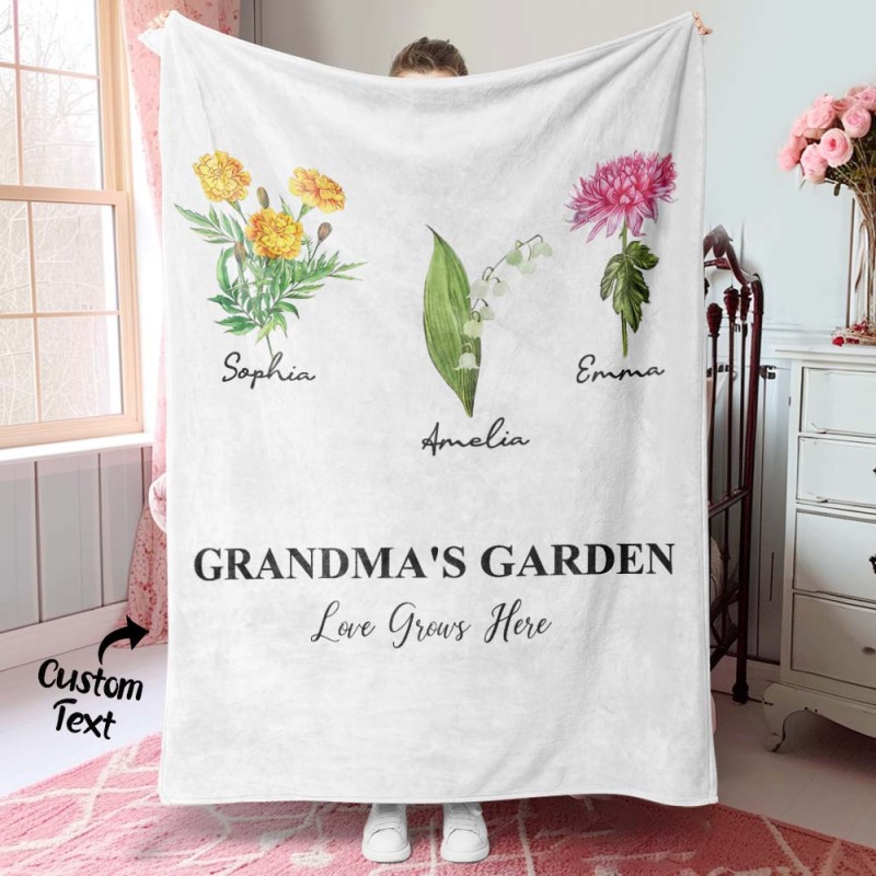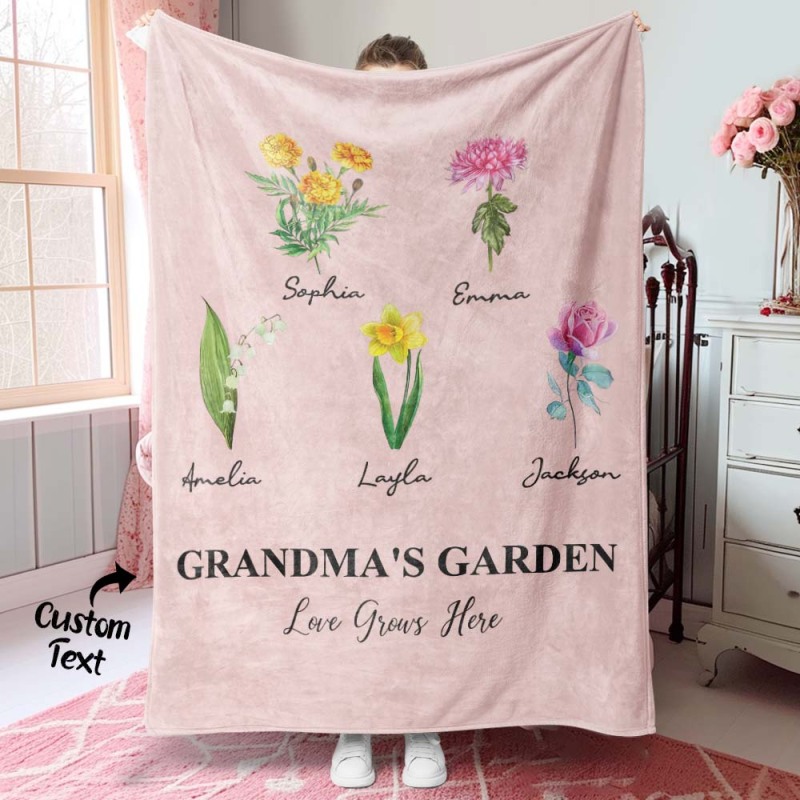 Custom Birth Month Flower Blanket With 1-8 Names Thoughtful Gift For Mother Grandma