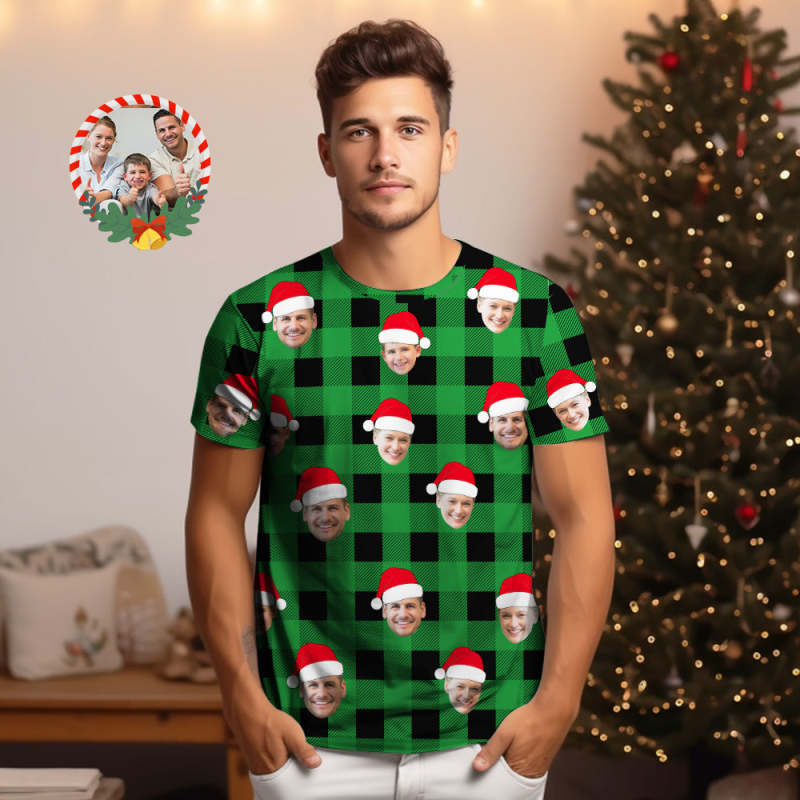 Custom Shirt Personalized Buffalo Plaid T-shirt Personalized T-shirt Custom Face T-shirts Merry Christmas