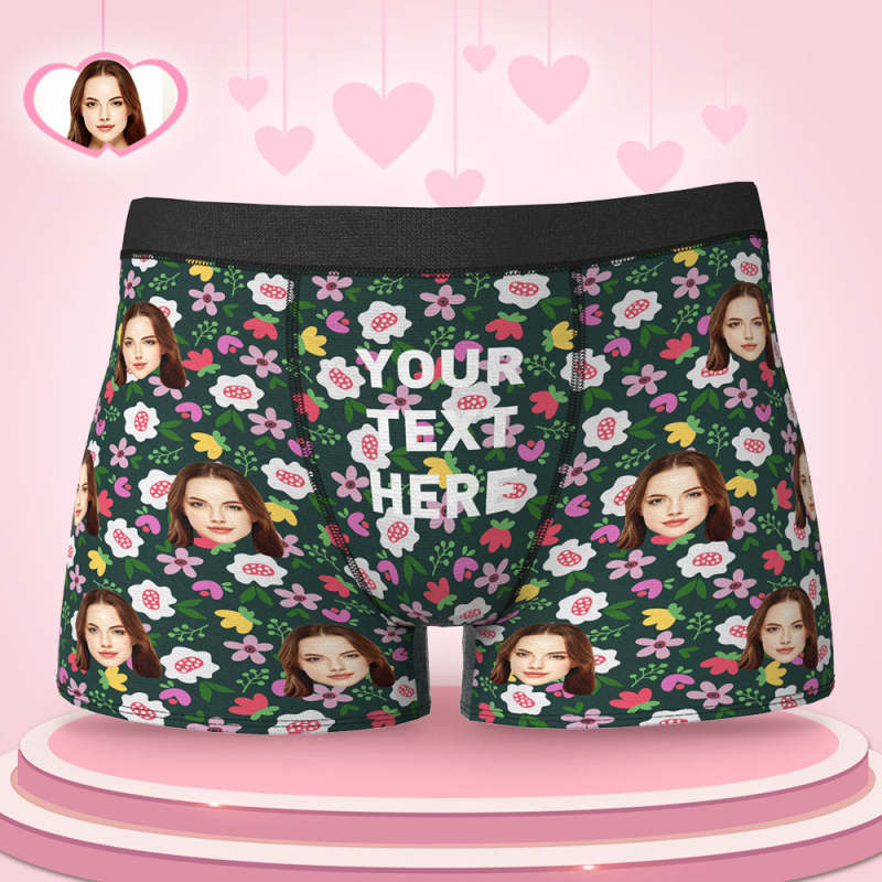 Custom Colorful Floral Hearts Boxer Briefs Put Your Face on Comfortable Boxer Underwear Fun Gift