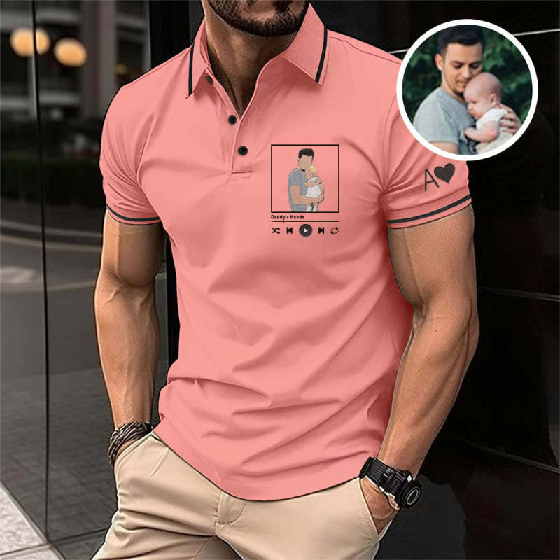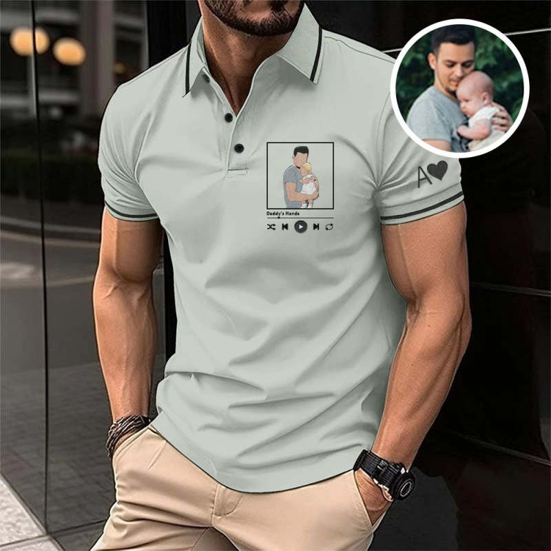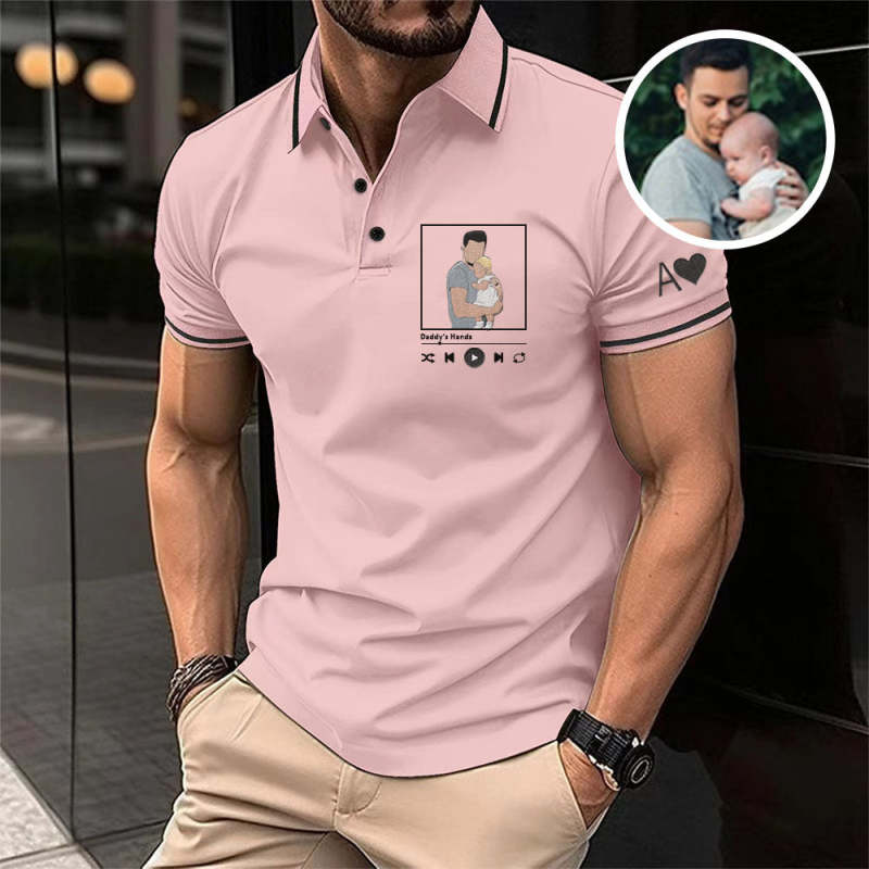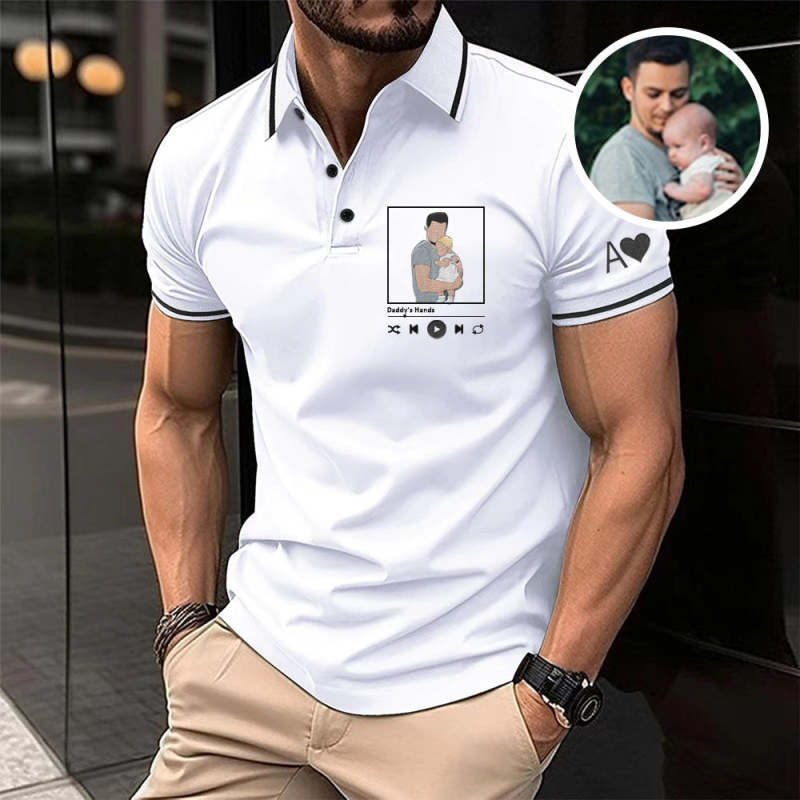 Father's Day Gifts Custom Embroidered Polo shirt Portrait Music Player Family Gift
