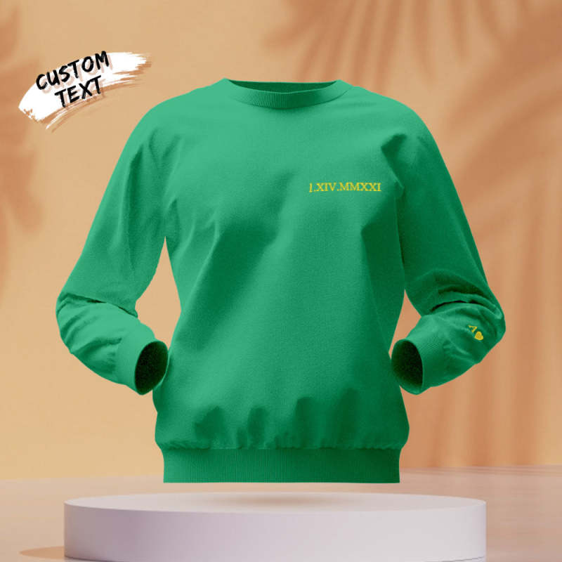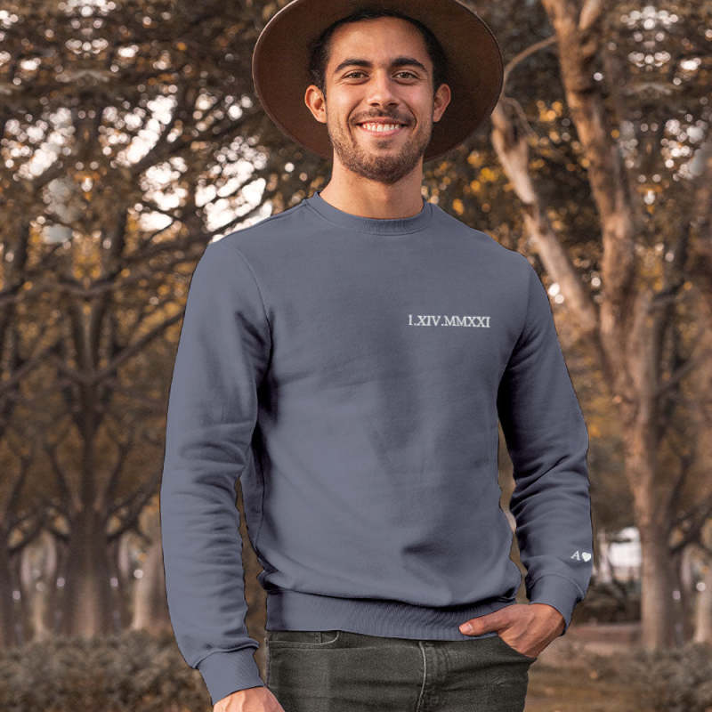 Custom Engraved Hoodie Embroidery Round Neck Roman Numeral Date Couple Gifts