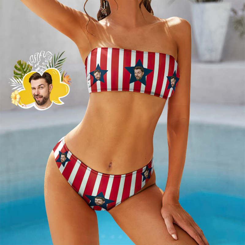 Custom Face Bikini American Flag Bandeaukini Gift For Her