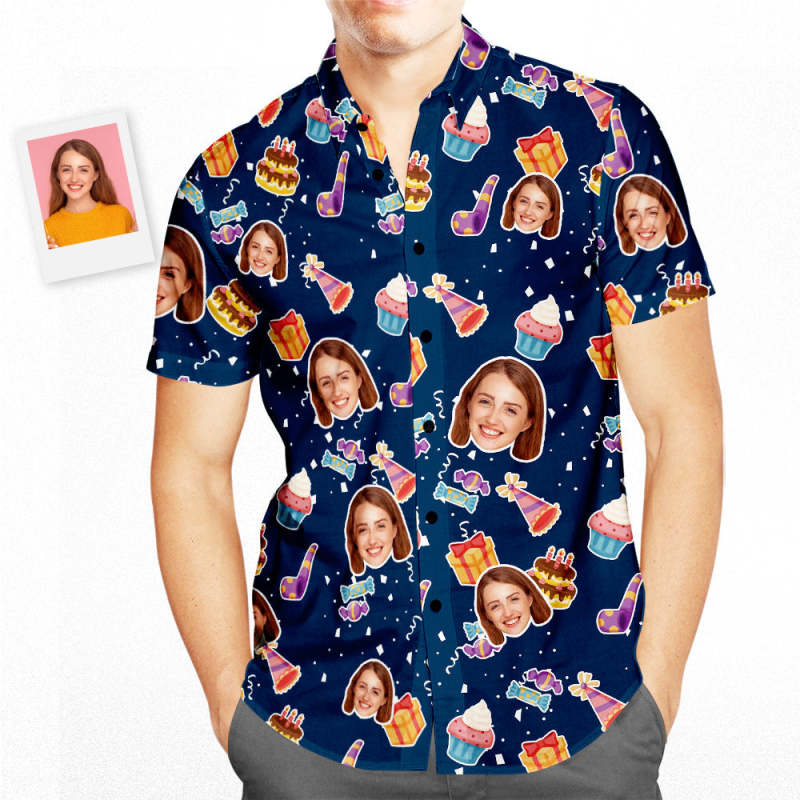 Custom Face Birthday Patterns Men's All Over Print Hawaiian Shirt