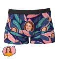 Custom Face Boxer Blue Leaves Couple Matching Briefs Underwear Holiday Gift