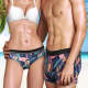 Custom Face Boxer Blue Leaves Couple Matching Briefs Underwear Holiday Gift