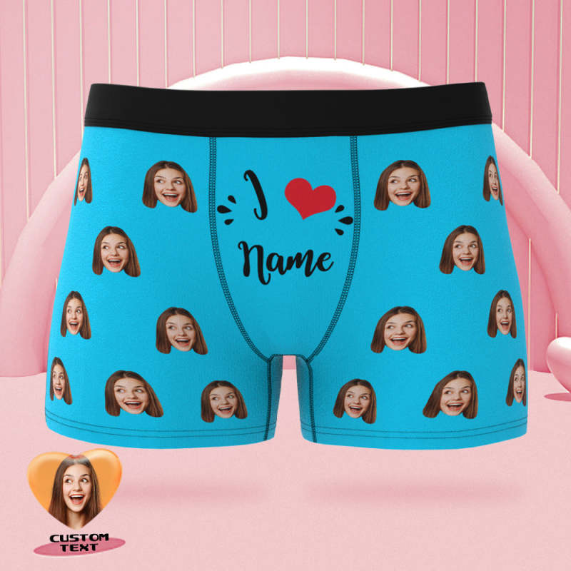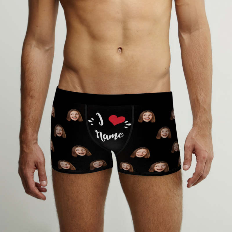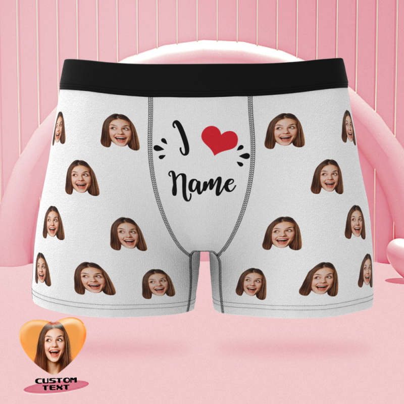 Custom Face Boxer Briefs I Love Name Personalized Naughty Valentine's Day Gift for Him