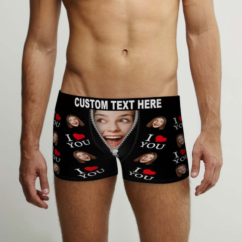 Custom Face Boxer Briefs I Love You Personalized Naughty Gift for Him