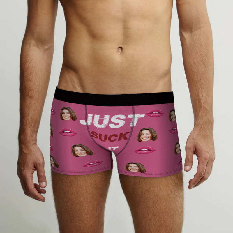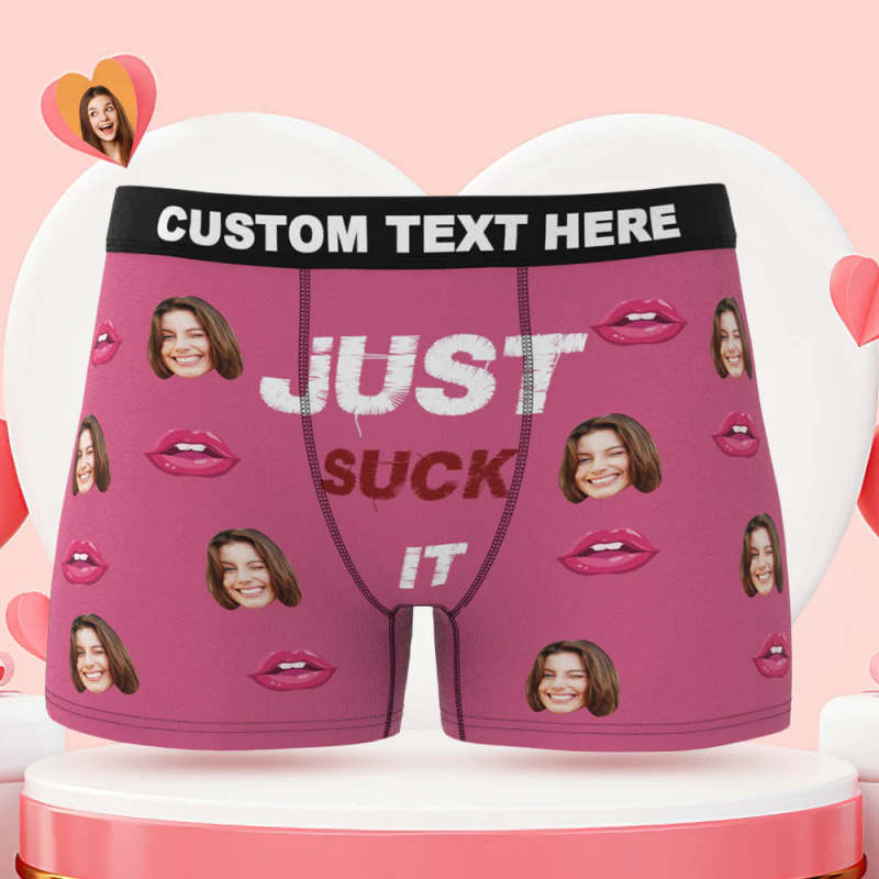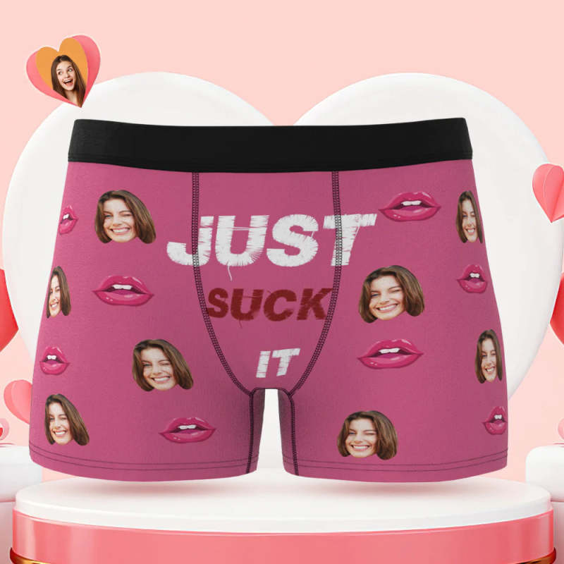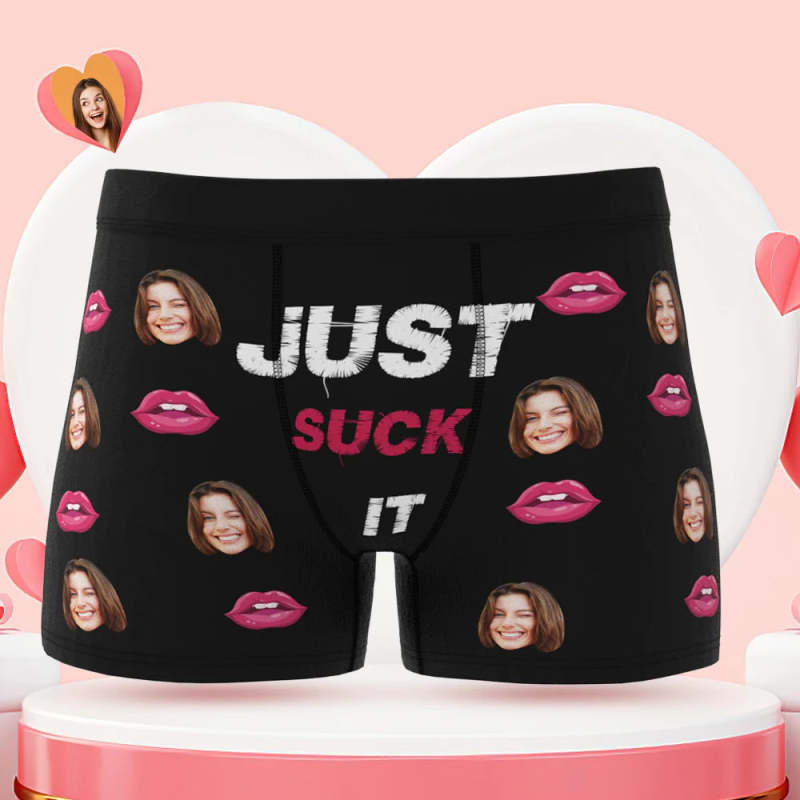 Custom Face Boxer Briefs Just Suck It Personalized Naughty Valentine's Day Gift for Him