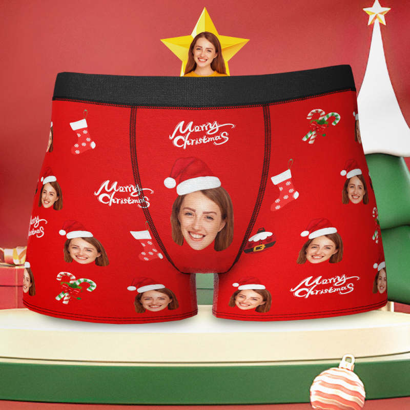 Custom Face Boxer Briefs Merry Christmas Personalized Face Underwear Christmas Gift