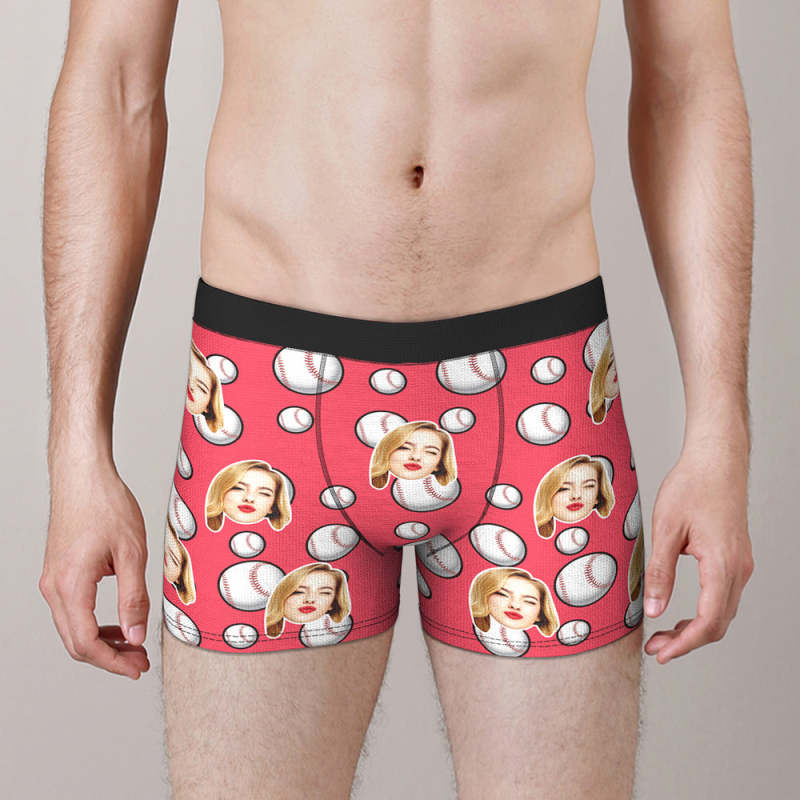 Custom Face Boxer Briefs Personalized Baseball Sports Boxers Gift for Him