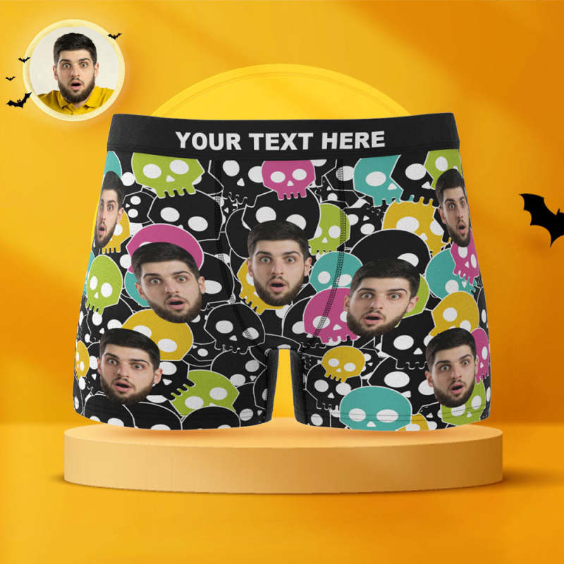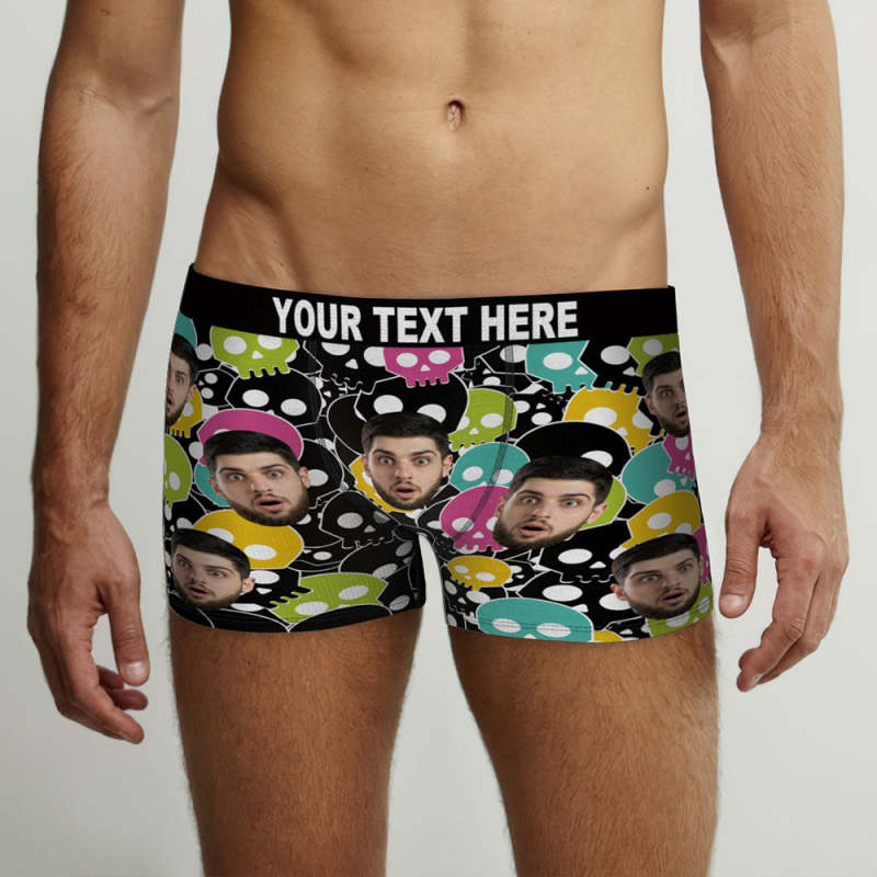 Custom Face Boxer Briefs Personalized Skull Print Underwear Gift for Him