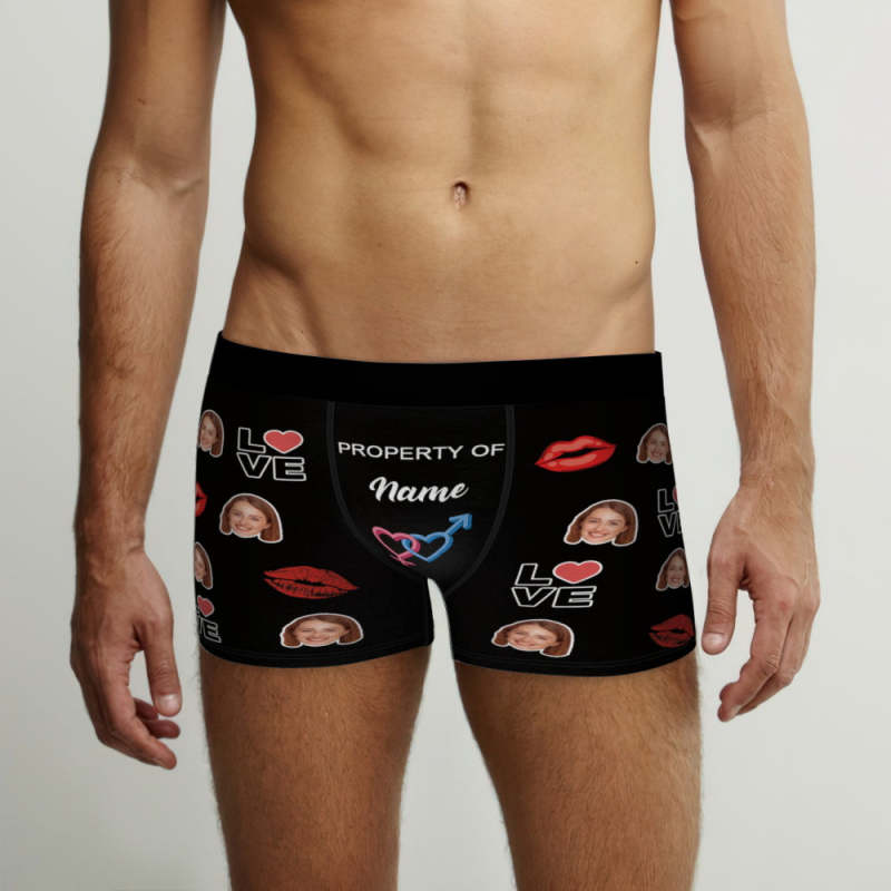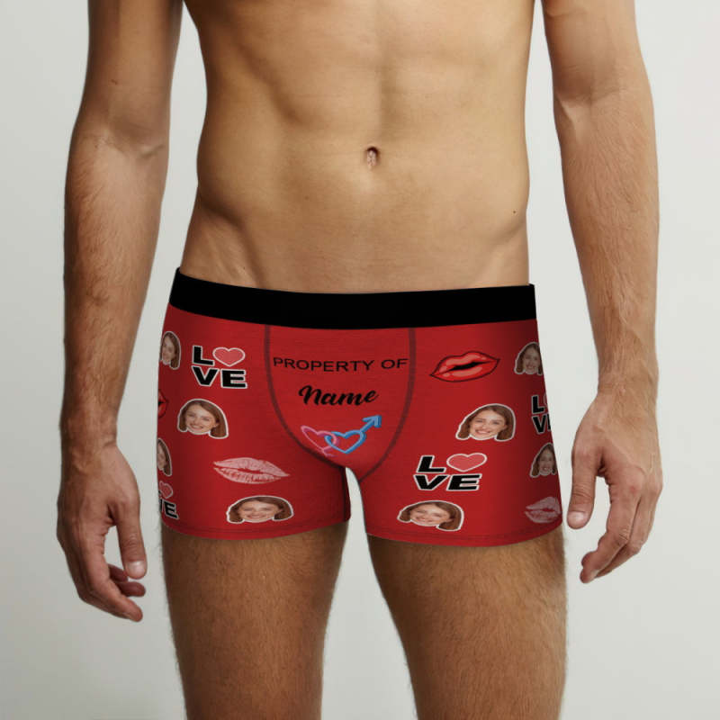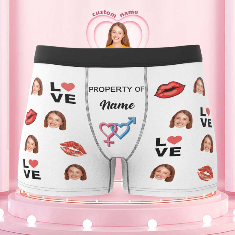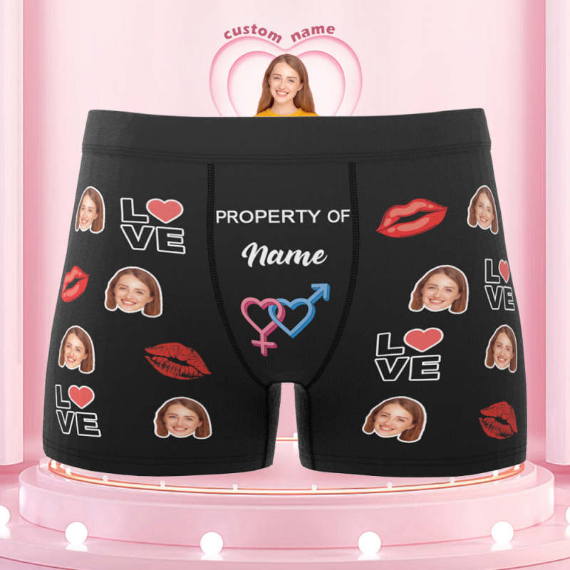 Custom Face Boxer Briefs Property of Name Personalized Naughty Gift for Him