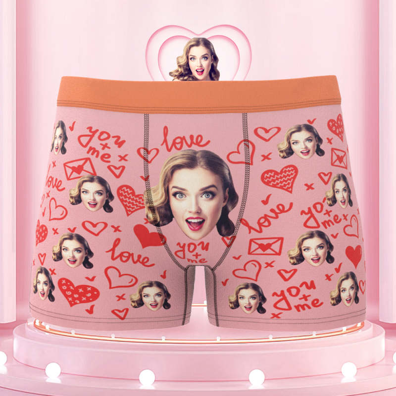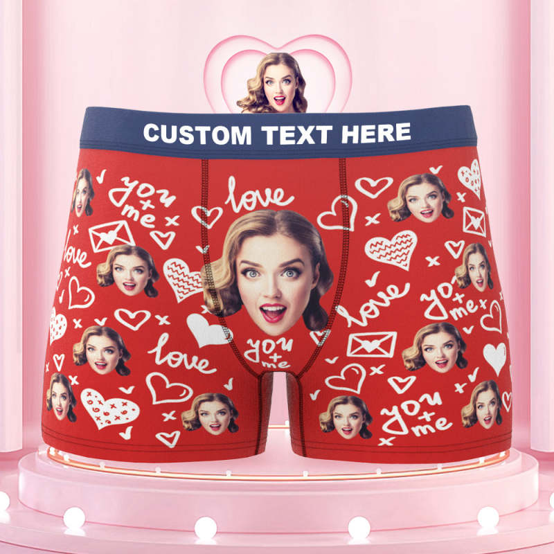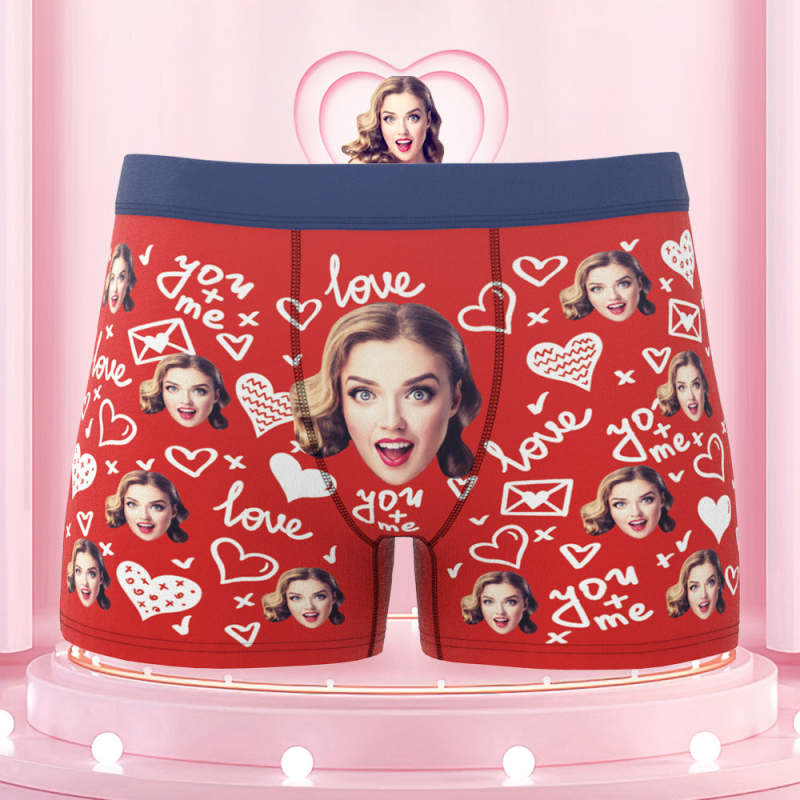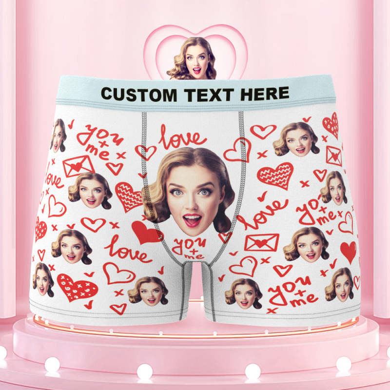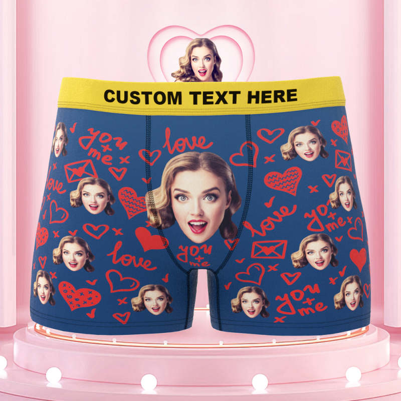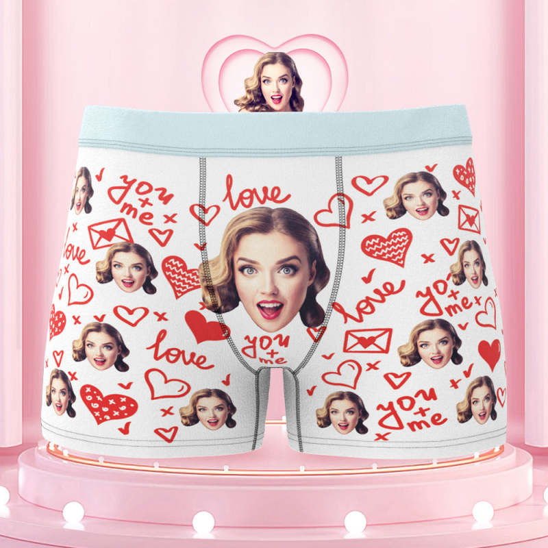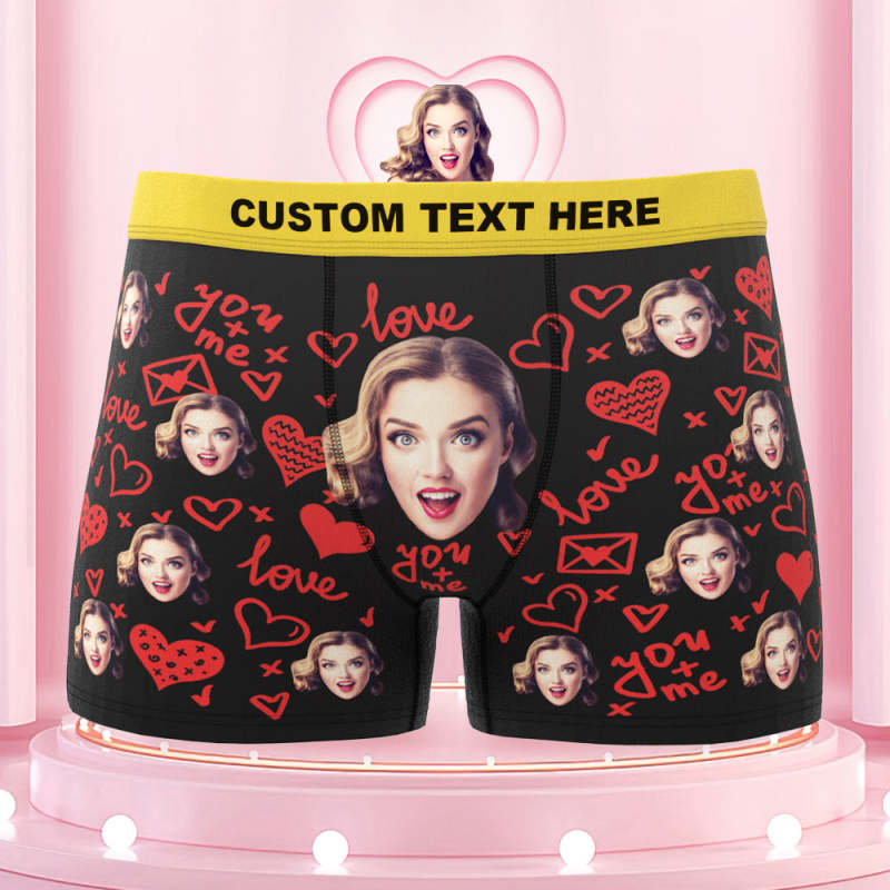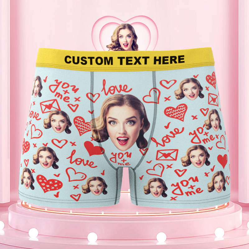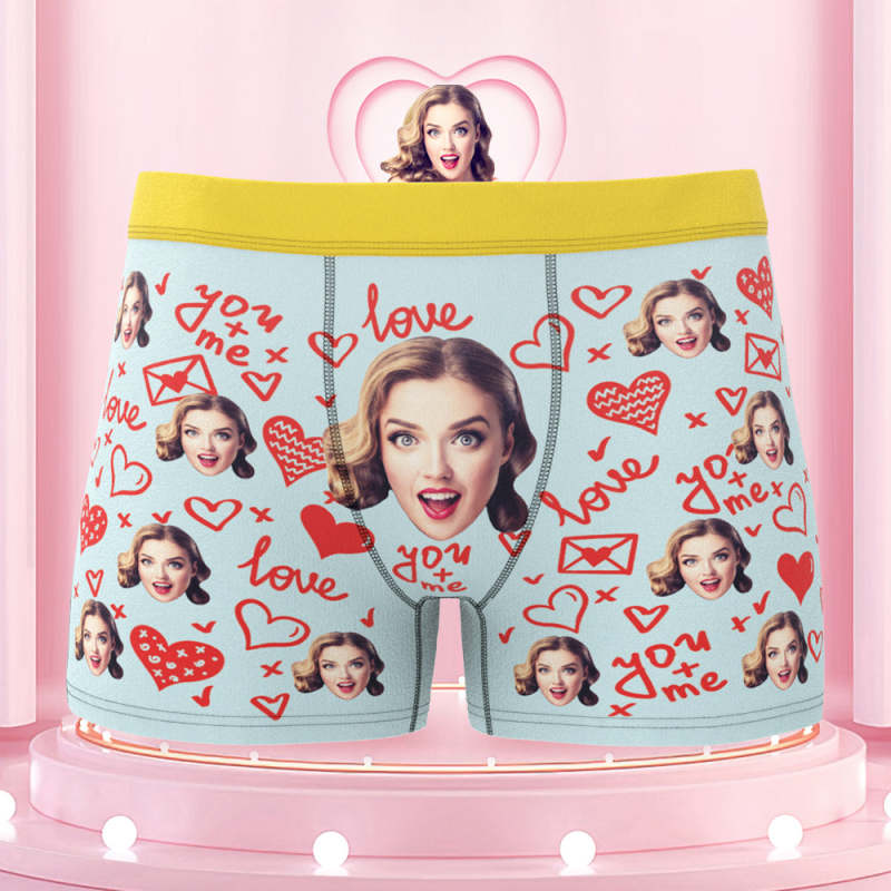 Custom Face Boxer Briefs with Colorful Waistband You and Me Equals to Love Gift For Him